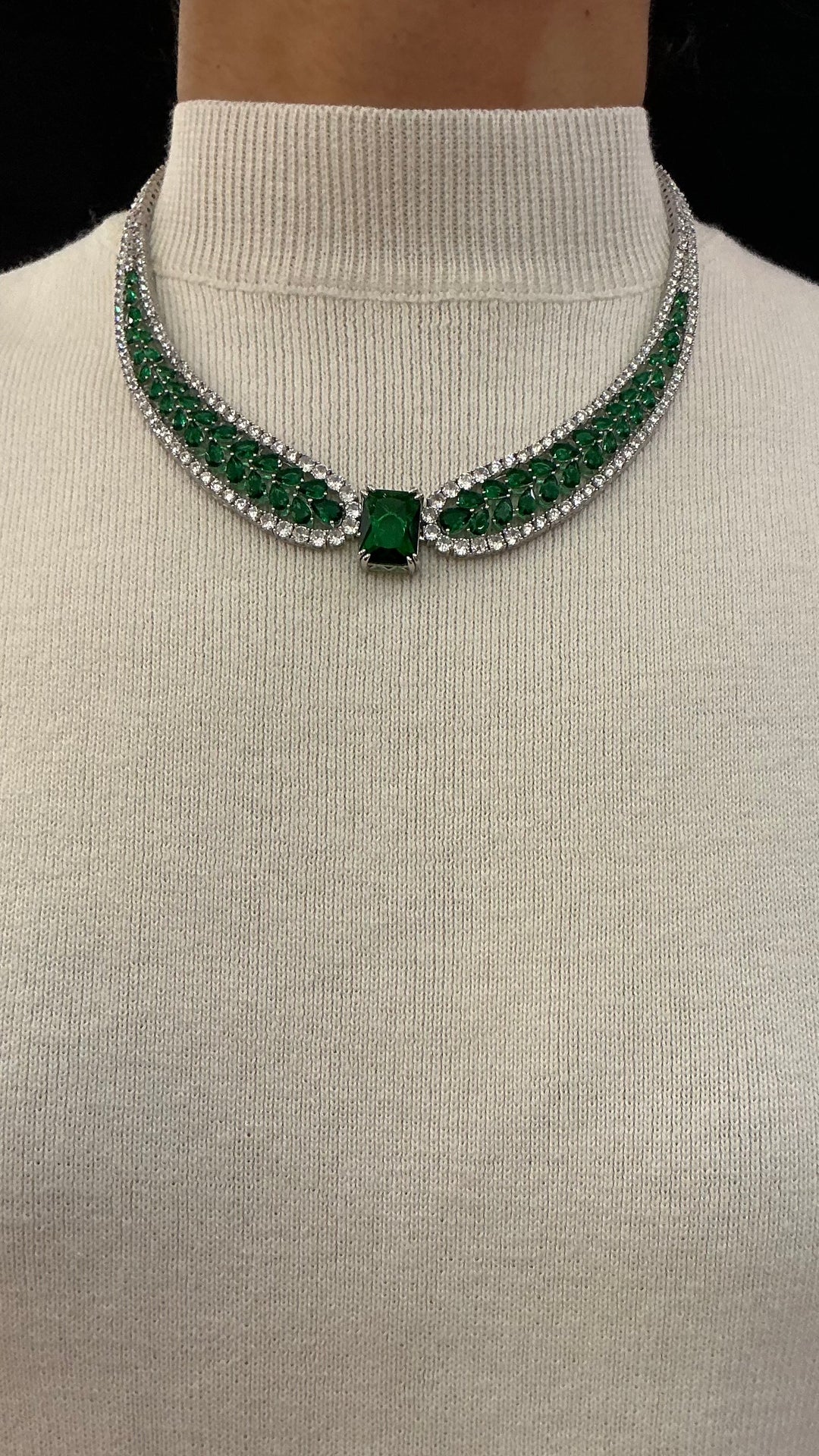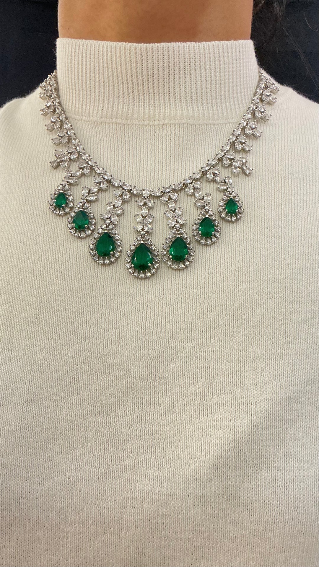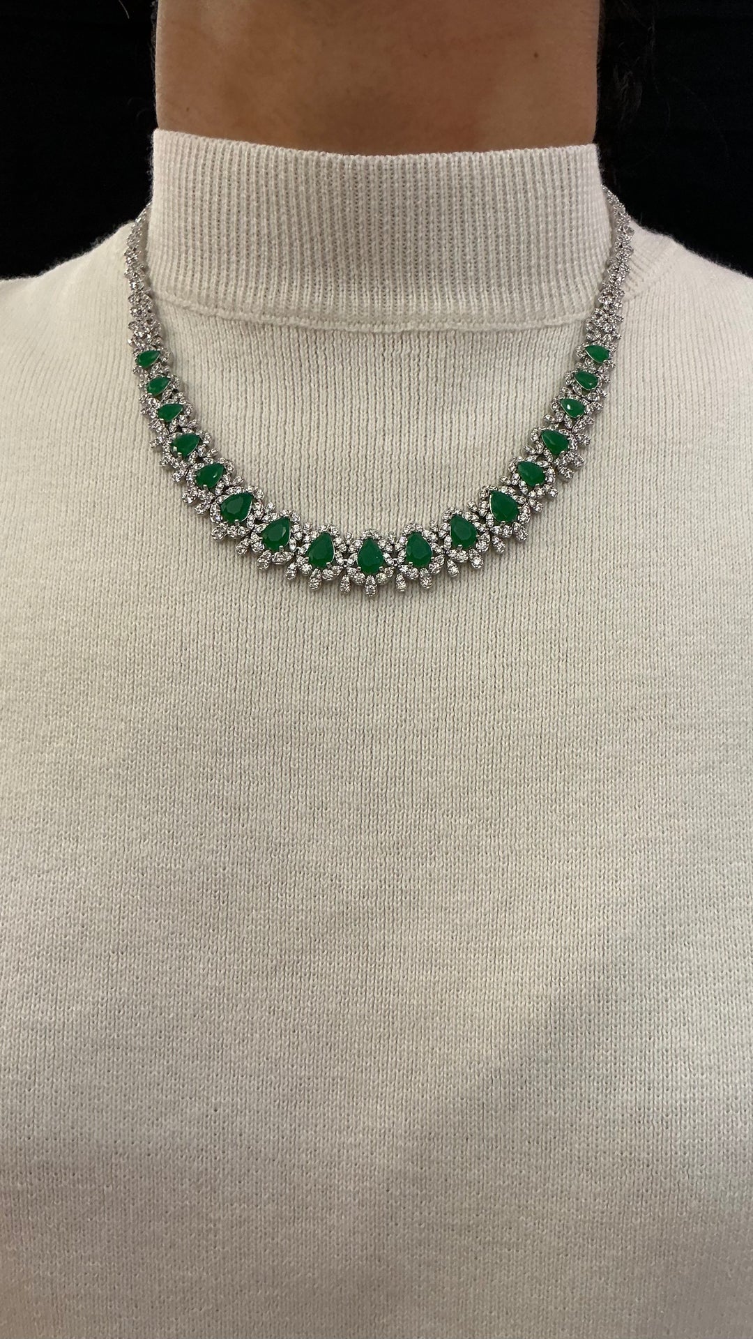 Majestic Emerald Statement Necklace with Diamond Accents