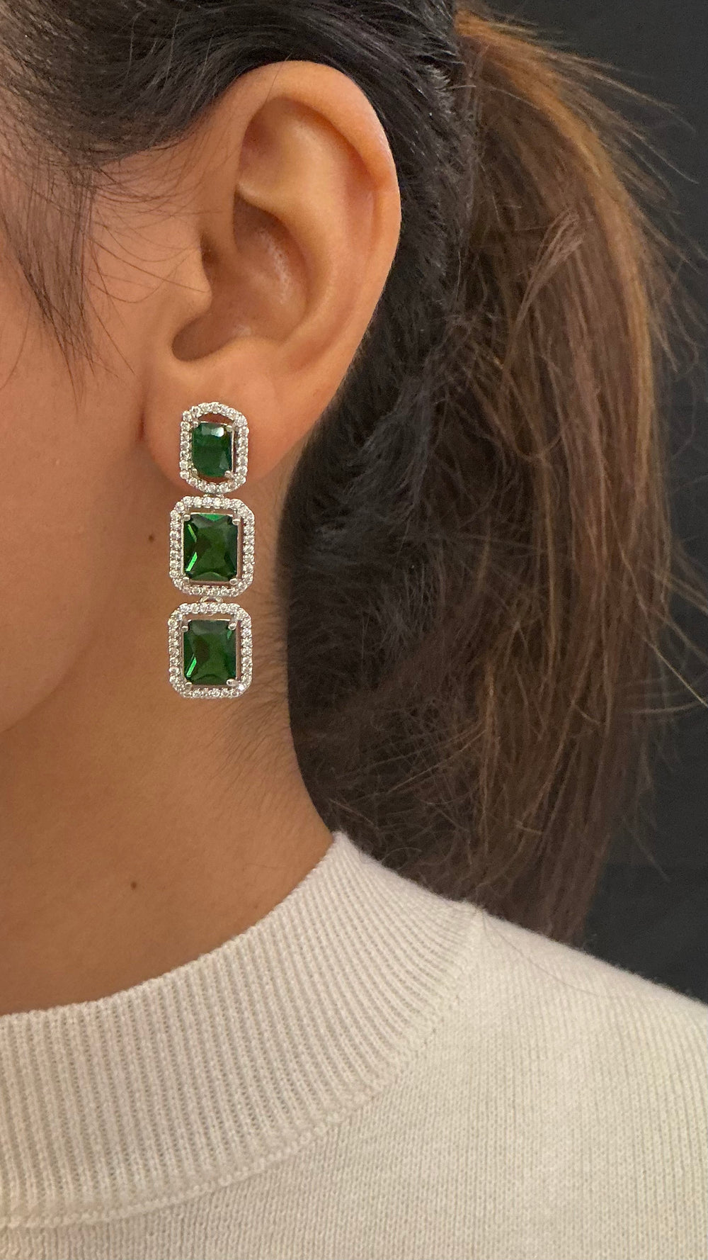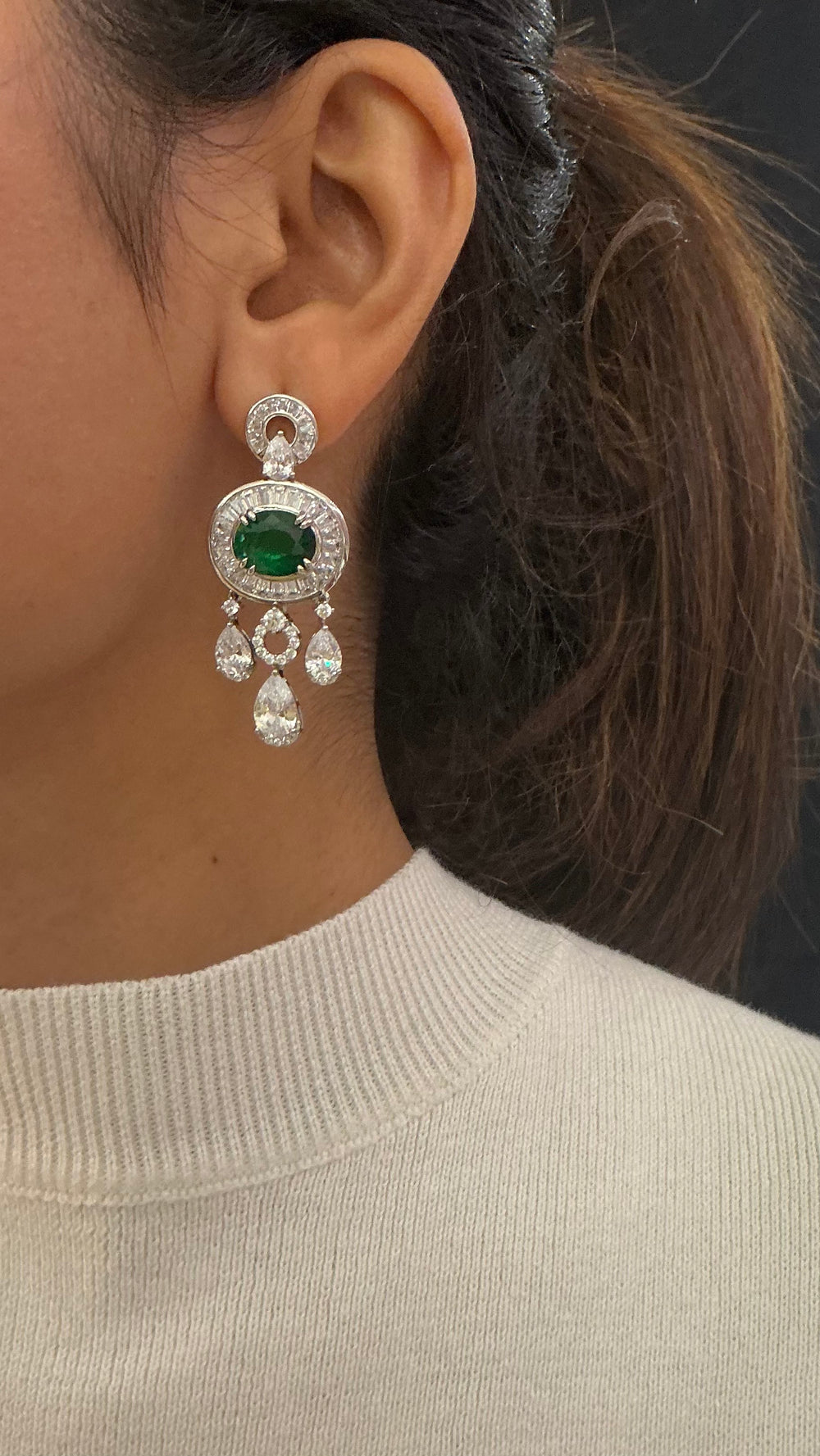 Royal Emerald Green & White Kundan Layered Bridal Necklace Set with Statement Earrings