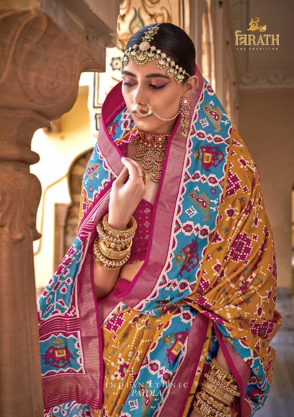 Pink & Orange Patola Silk Saree with Intricate Geometric Weaving, Paired with a Matching Blouse
