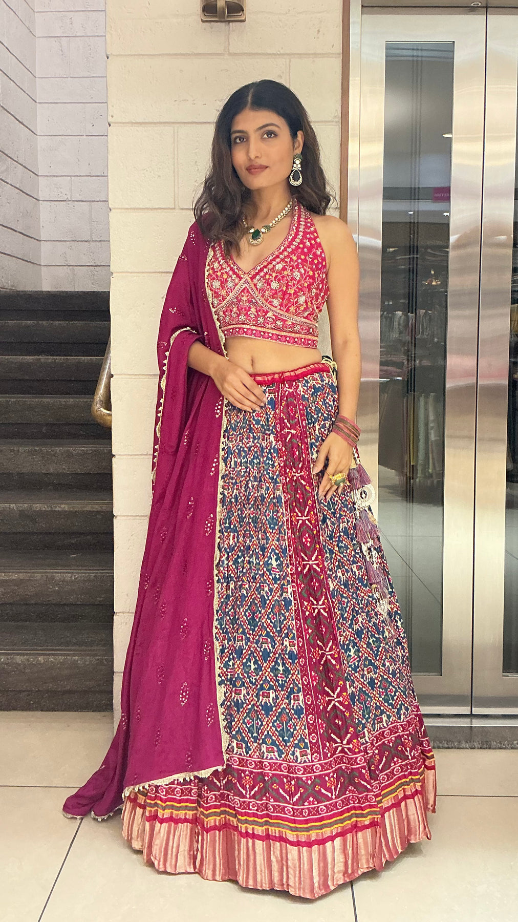 • Styling Element: Heavy Embroidered Blouse with Printed Flare Lehenga