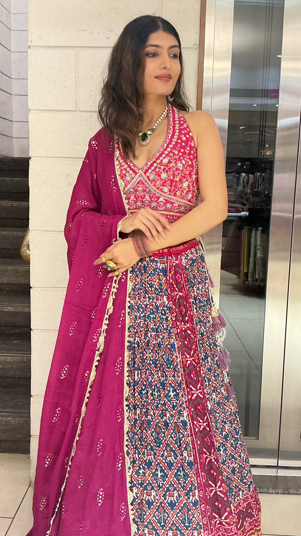 • Work Type: Thread Embroidered Blouse with Printed Lehenga