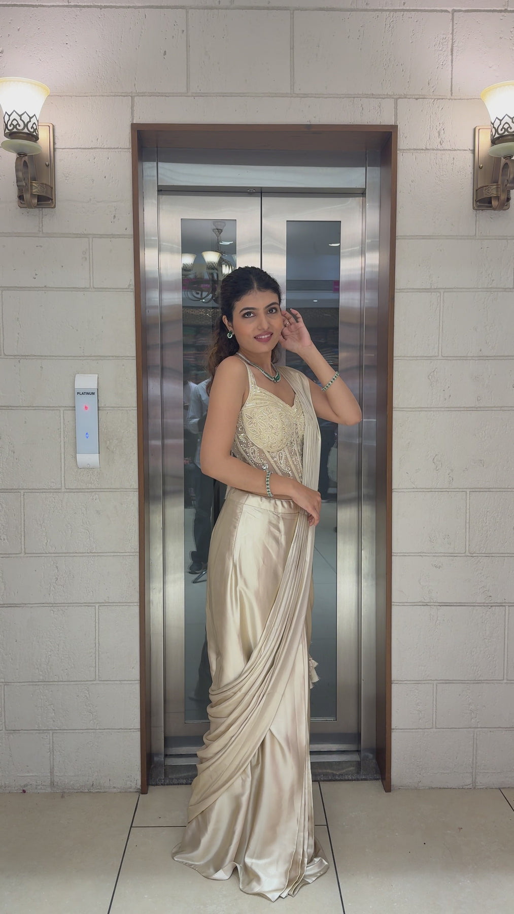 Champagne Gold Ready-to-Wear Draped Saree with Embroidered Corset Blouse