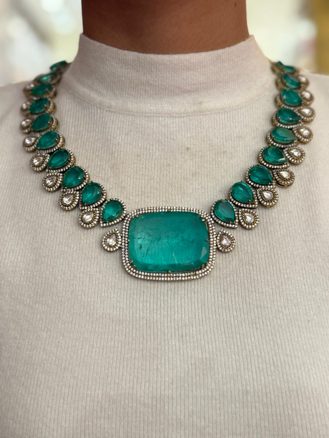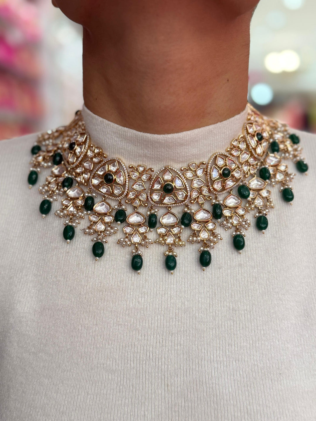 Royal Polki Kundan Choker Necklace with Emerald Green Beads