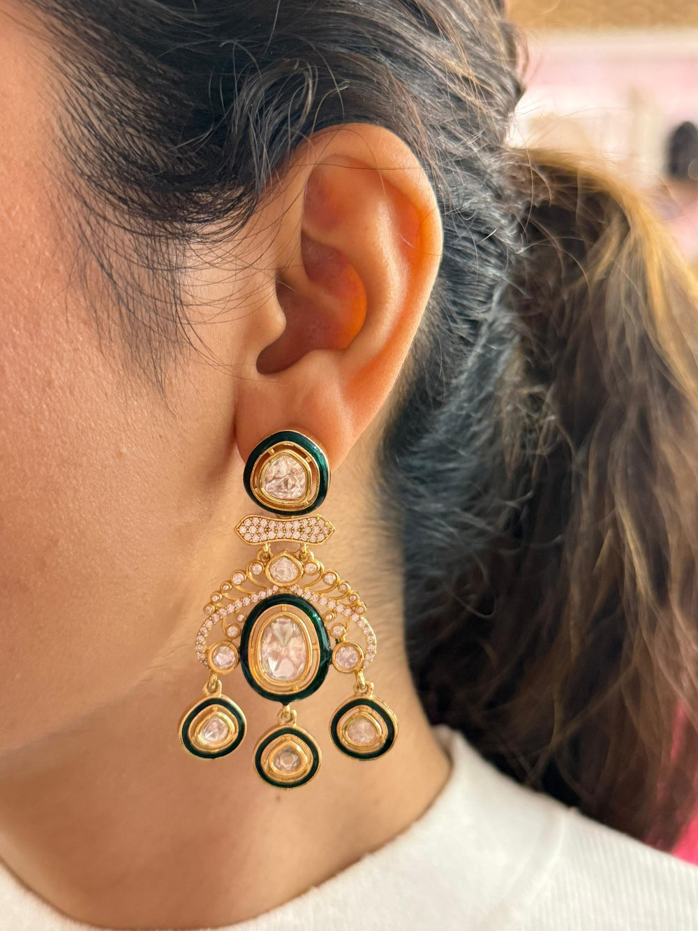 Royal Polki Kundan Necklace Set with Enamel Green Detailing & Matching Maang Tikka