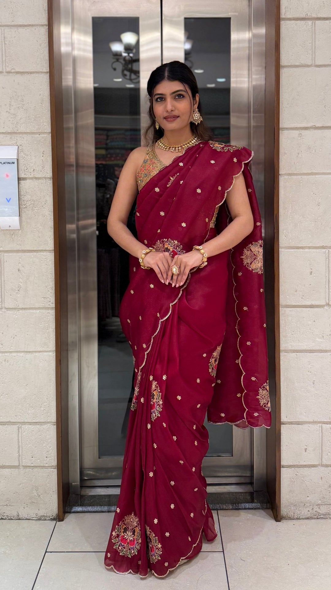 ● Organza sarees: These sarees are highly festive and look well-decorated with thread work and embroidery, and are very delicate and semi-translucent.