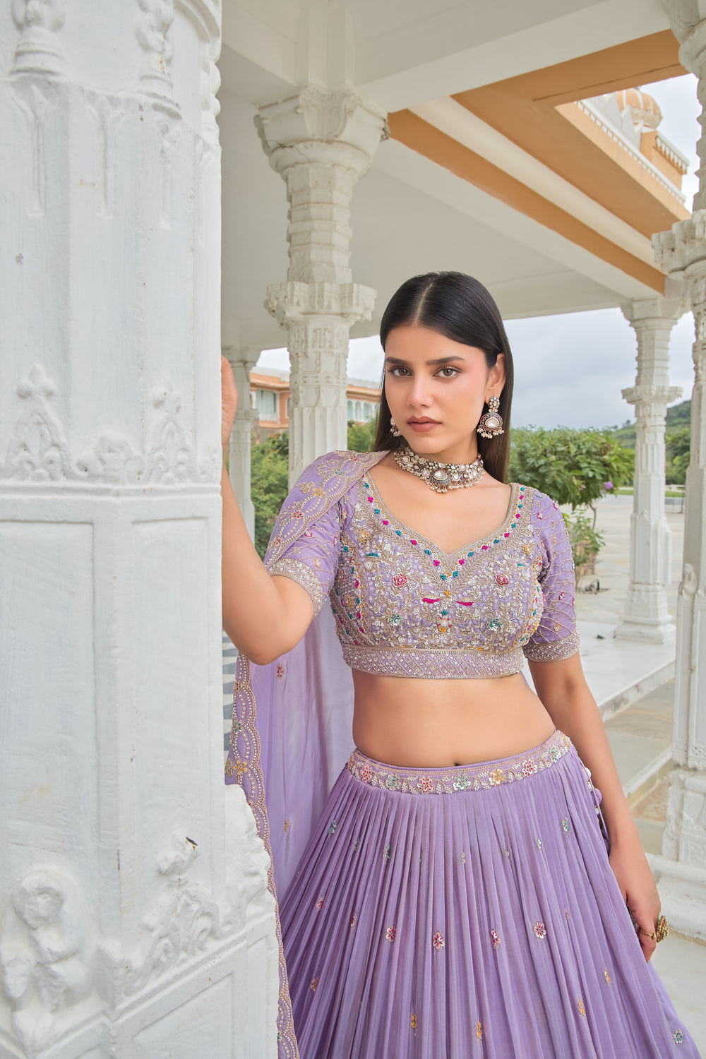 Color: Lehenga & Choli: Lavender | Dupatta: Matching Lavender