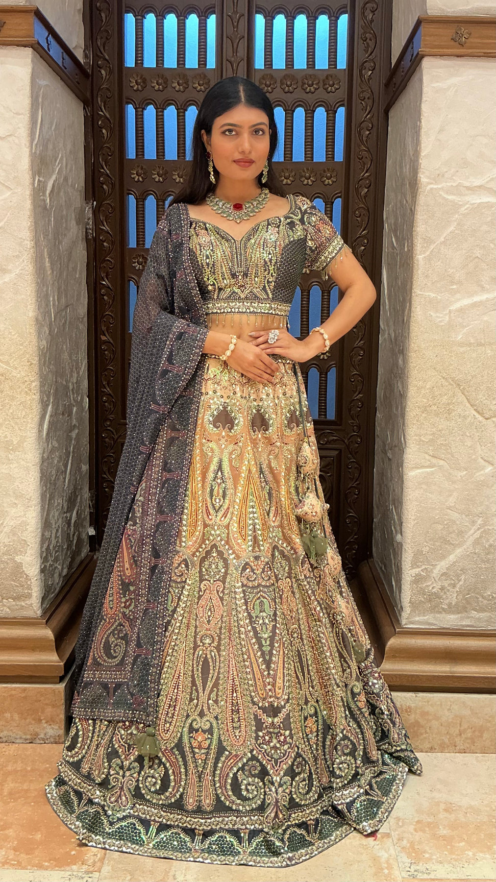 Make a royal entrance with this breathtaking Luxury Designer Lehenga Set, crafted with intricate detailing and timeless elegance.