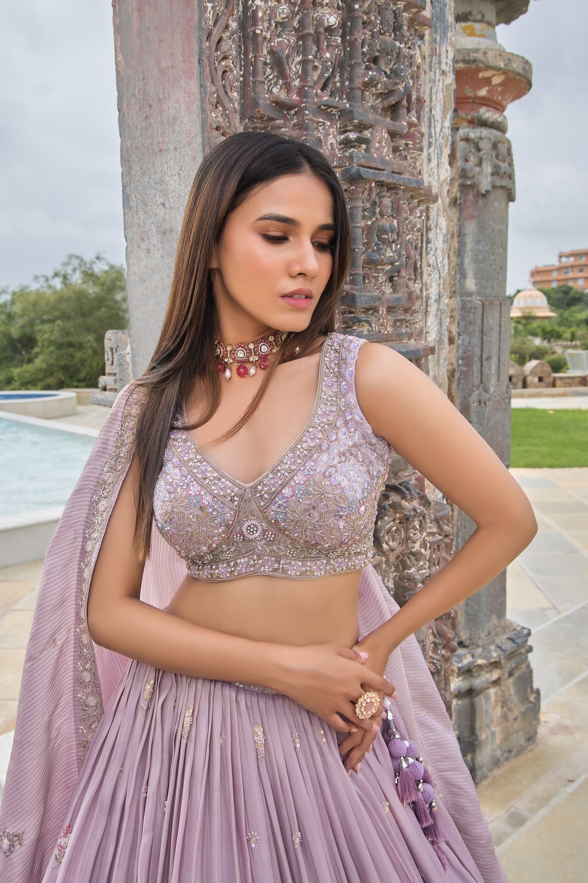 Pastel Lilac Embroidered Designer Lehenga with Sequin & Threadwork Blouse