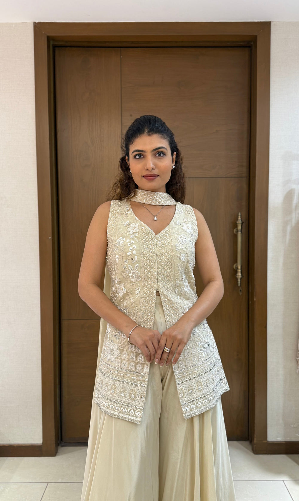Mustard Orange Pleated Lehenga with Embroidered Cream Choli and Dupatta