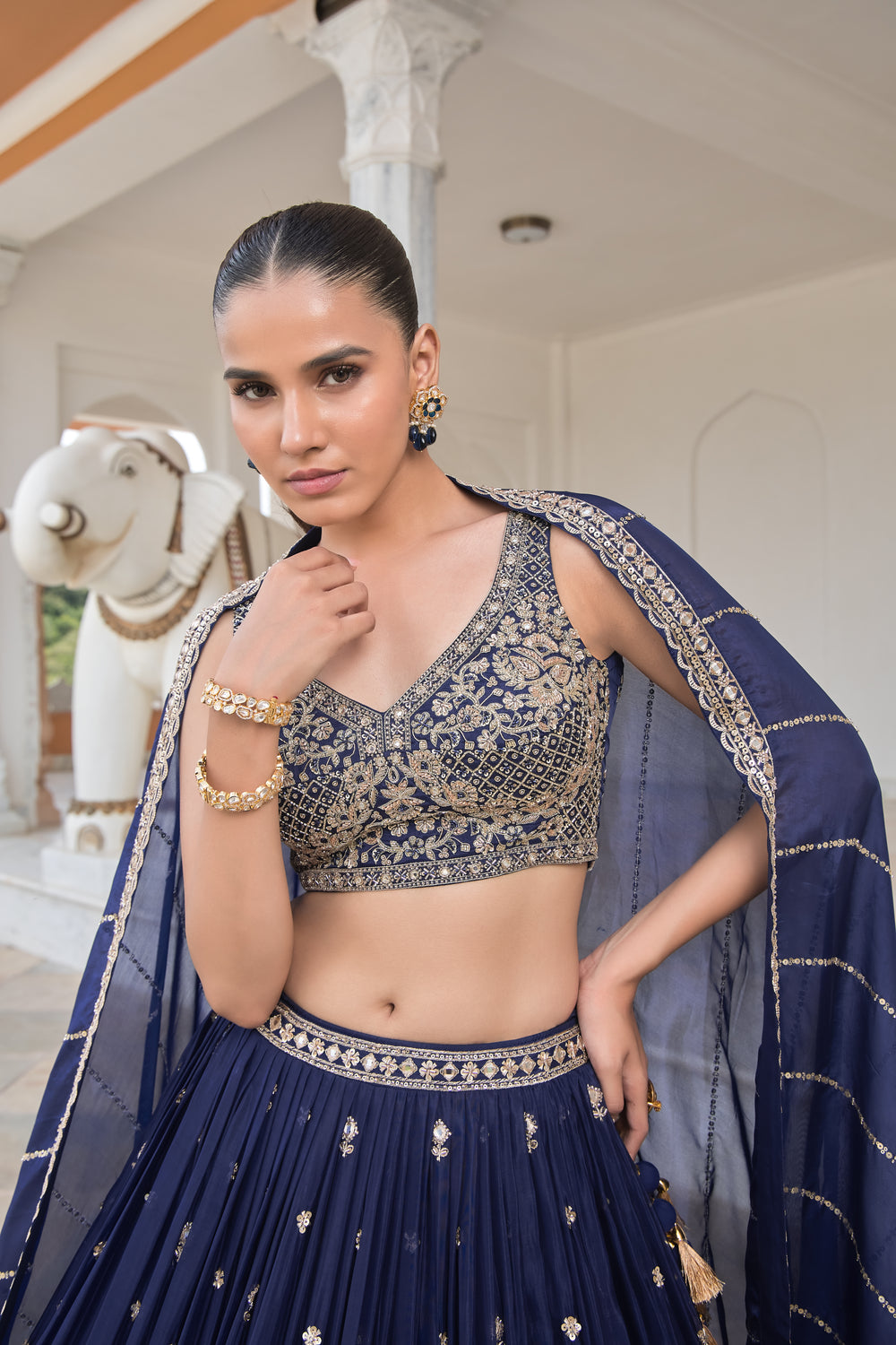 Color: Lehenga & Choli: Navy Blue | Dupatta: Matching Navy Blue