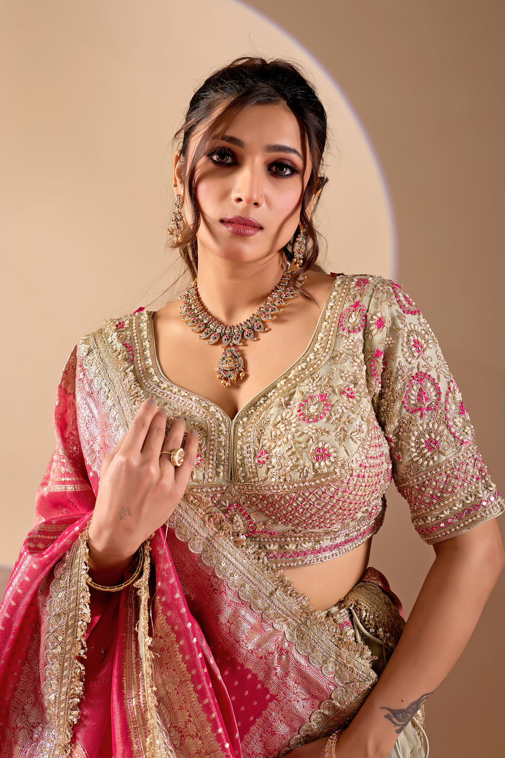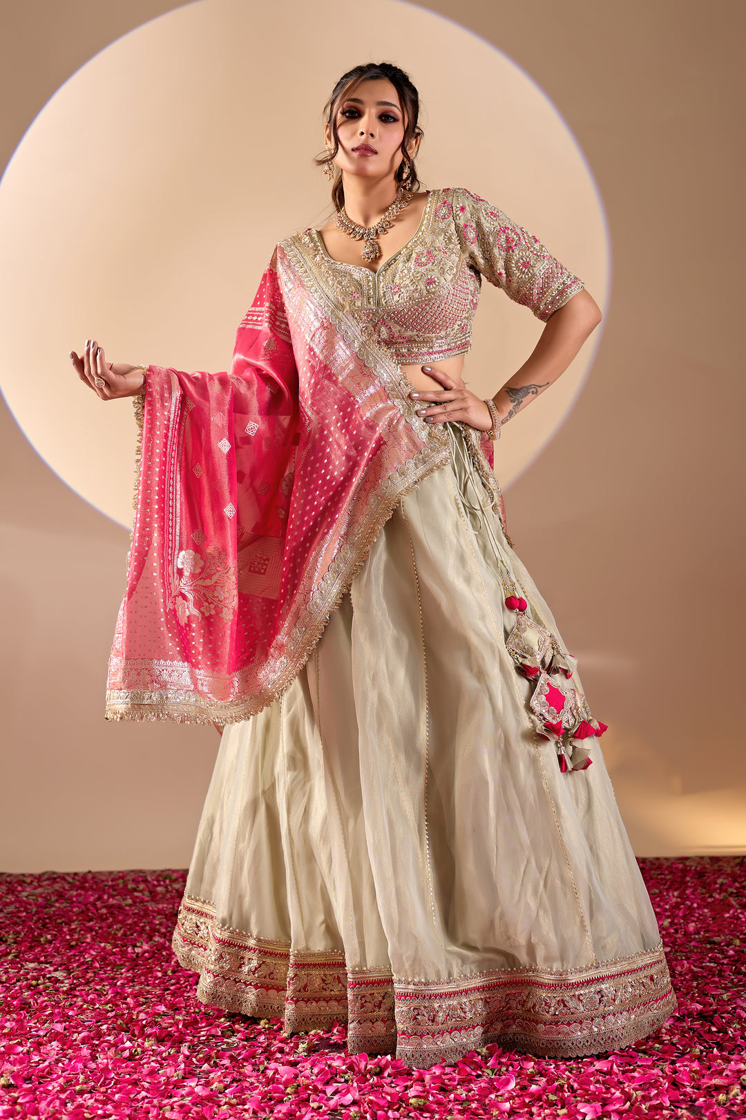 Ivory & Pink Bridal Lehenga Set with Banarasi Dupatta