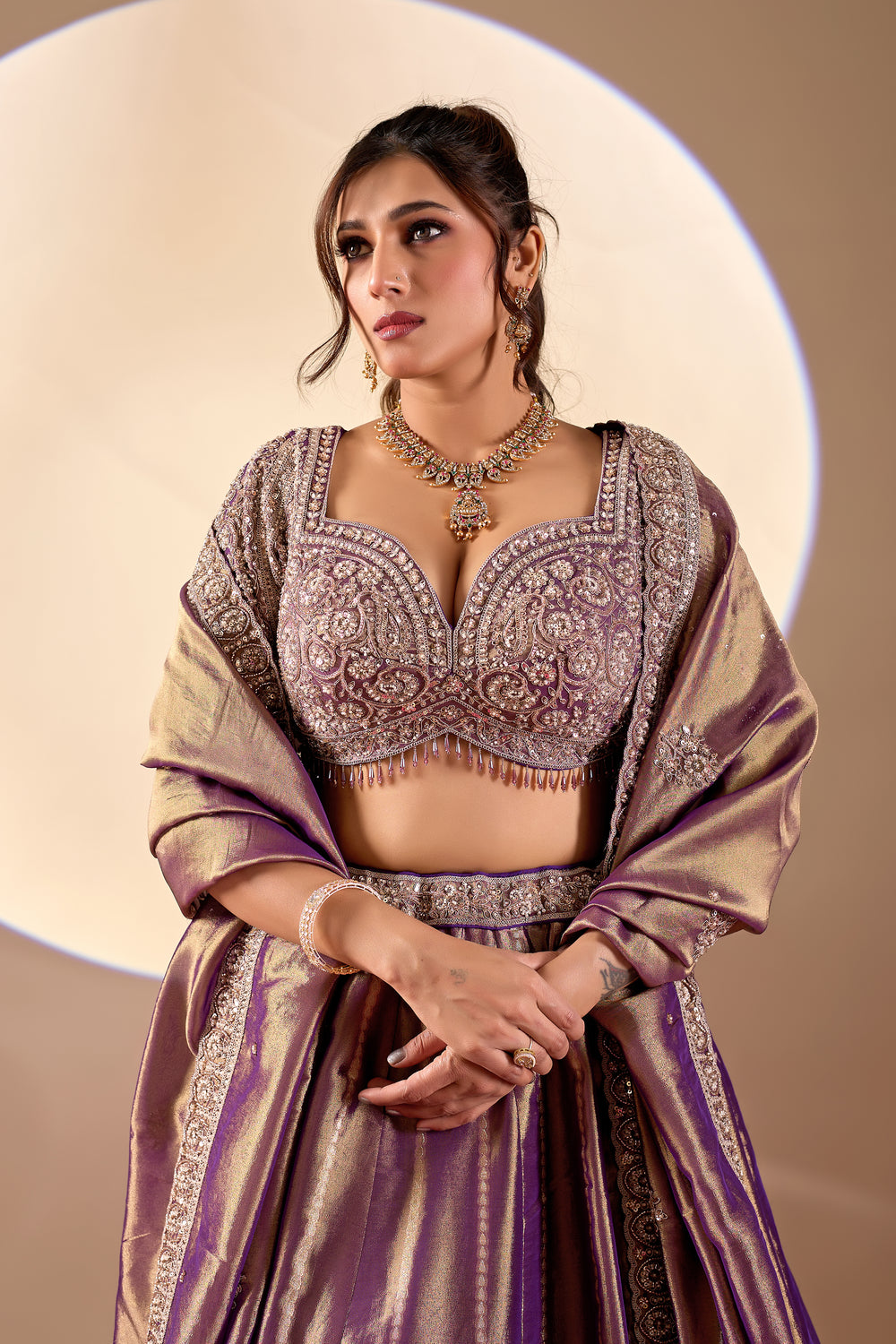 Royal Purple Banarasi Lehenga Set with Embroidered Blouse