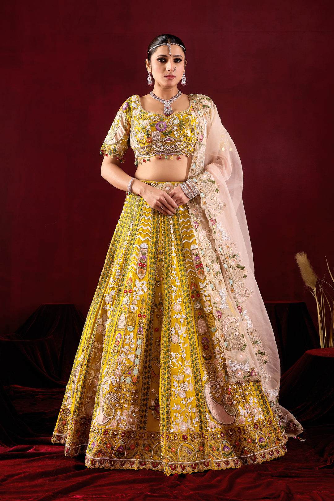 Mustard Yellow Bridal Lehenga Set with Embroidered Dupatta