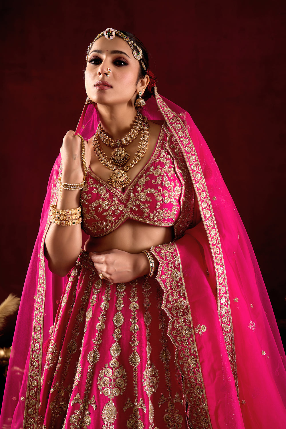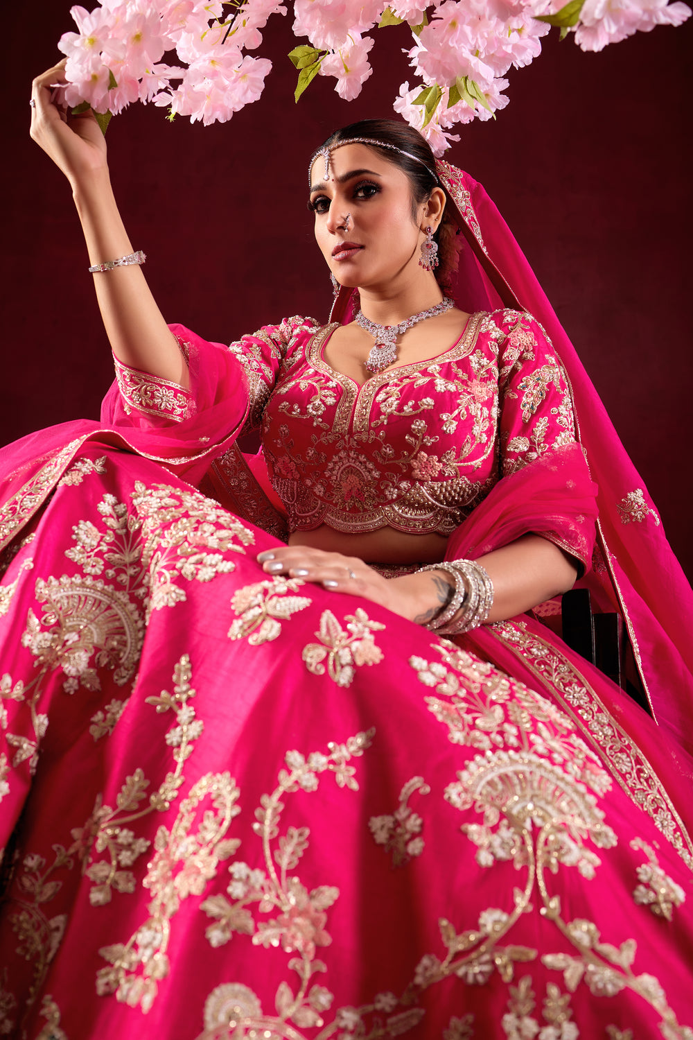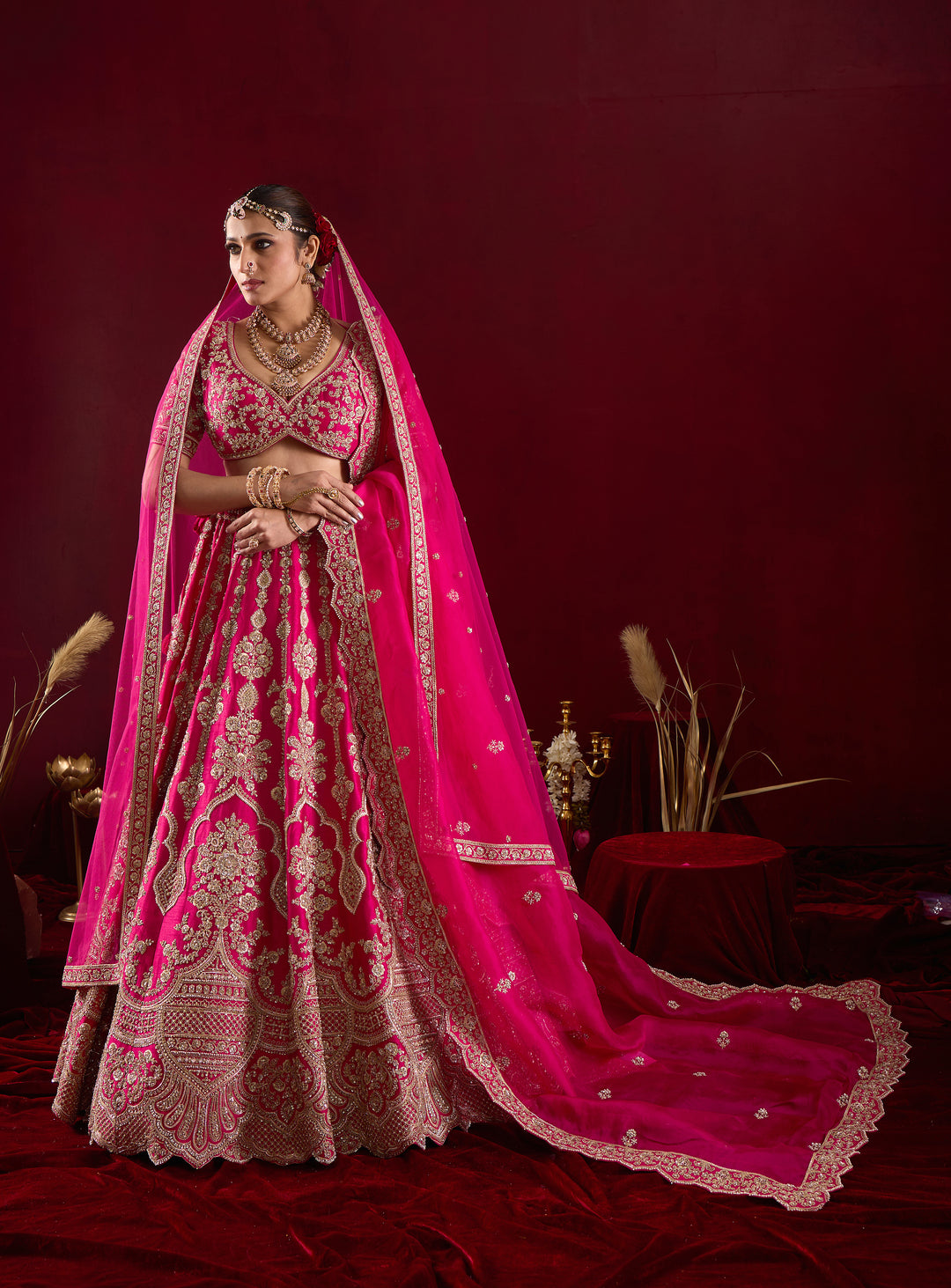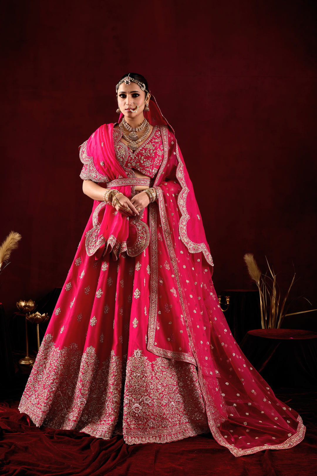 Radiant Fuchsia Pink Bridal Lehenga with Handcrafted Zardozi & Dabka Embroidery