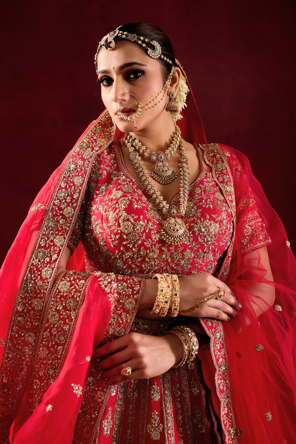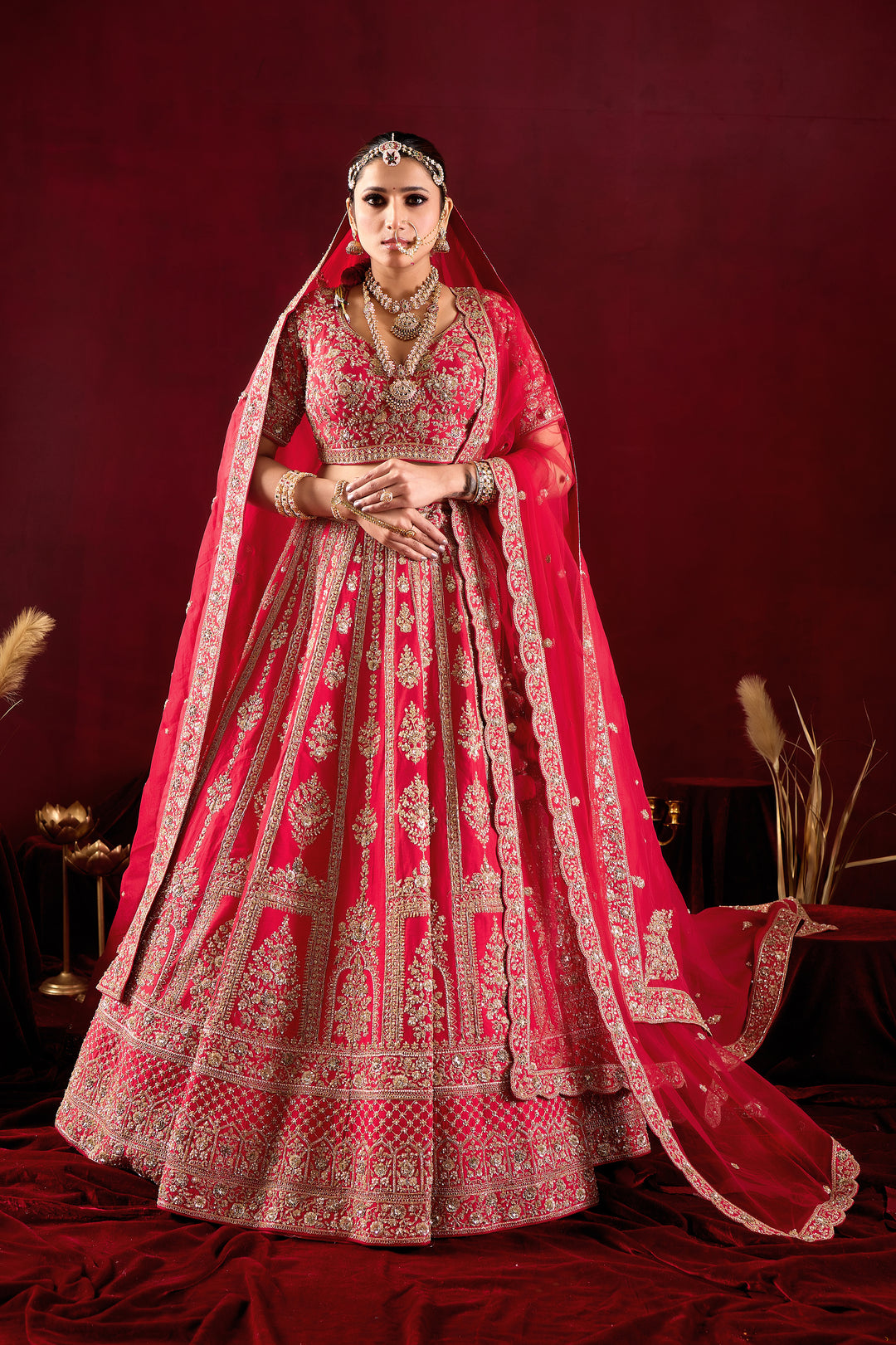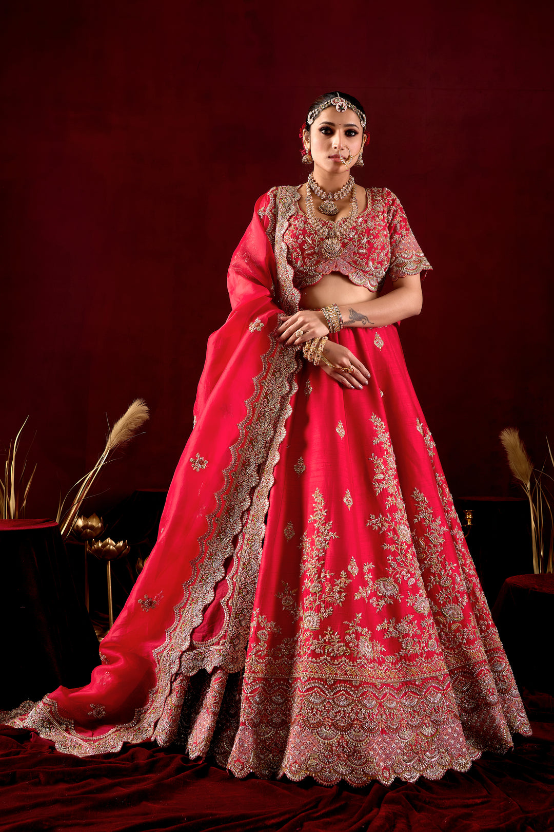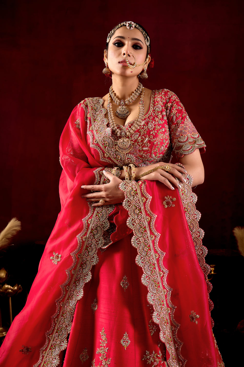 Imperial Scarlet Red Bridal Lehenga with Handcrafted Zardozi, Dabka & Resham Embroidery