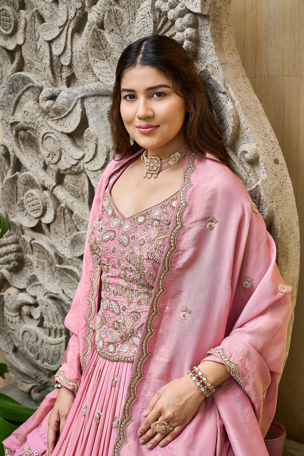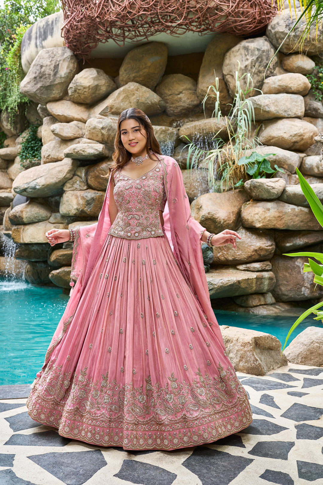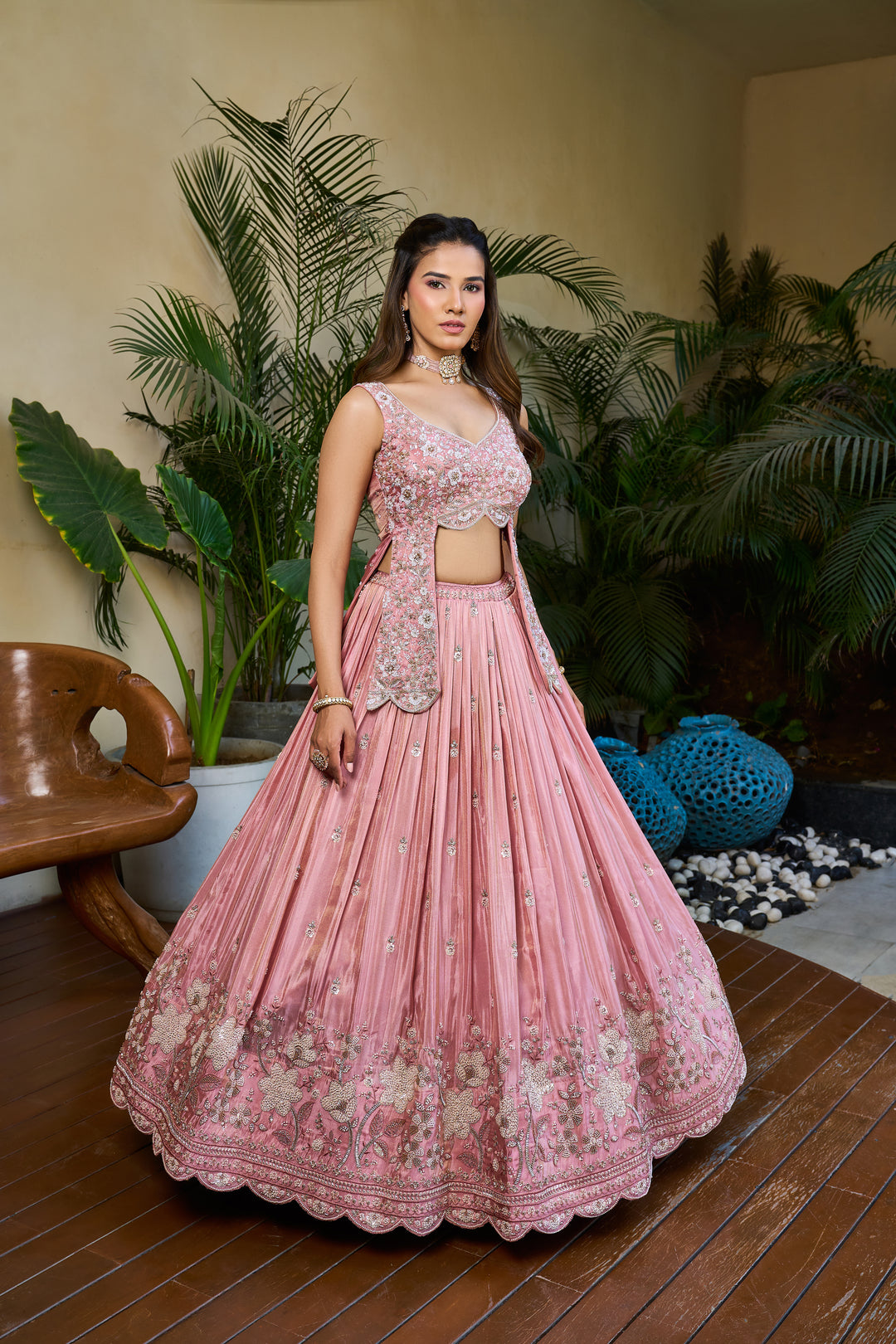 Blush Rose Heavy Bridal Lehenga with Intricate Zari & Hand-Embroidered Detailing