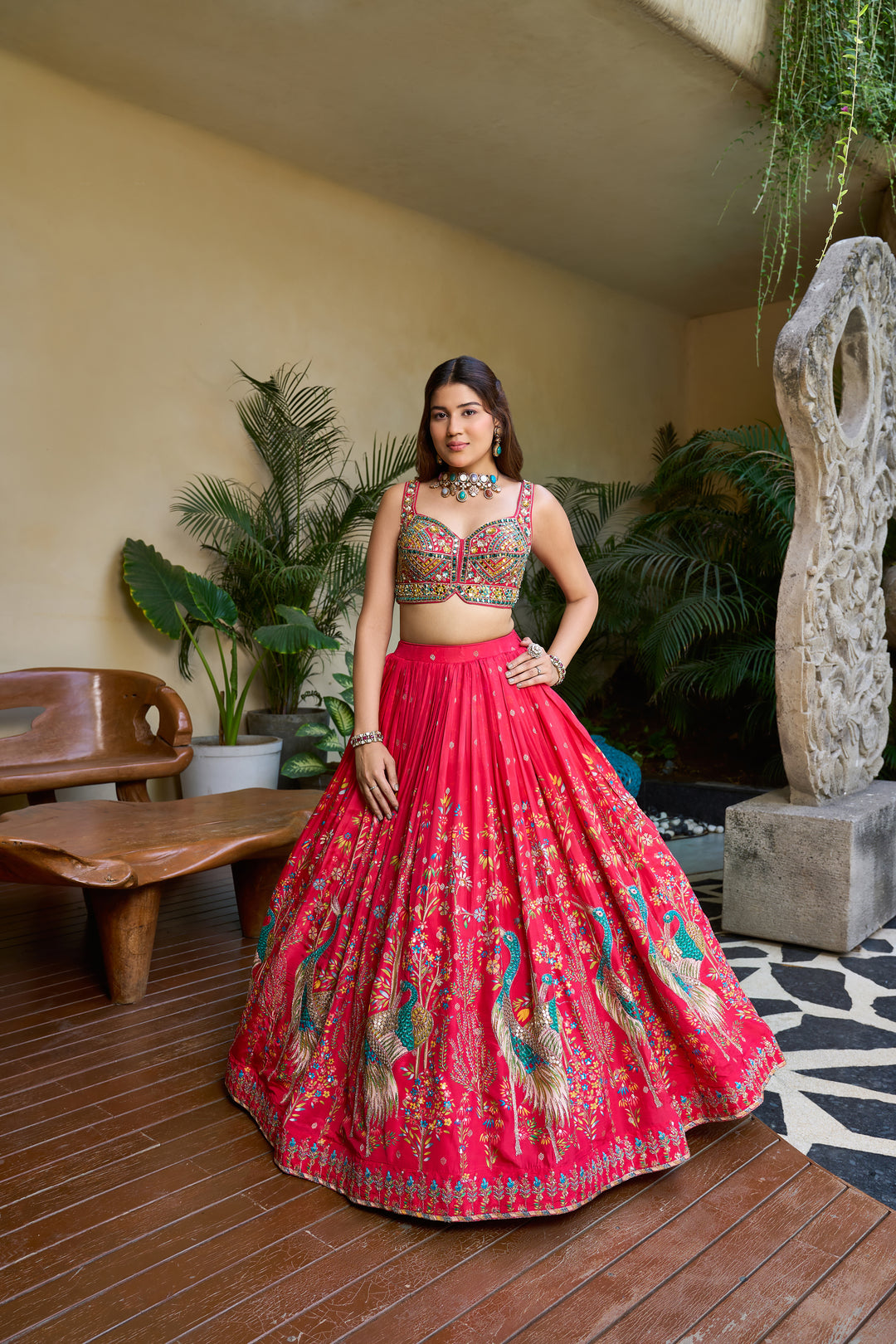 Imperial Scarlet Red Bridal Lehenga with Zardozi & Royal Peacock Embroidery