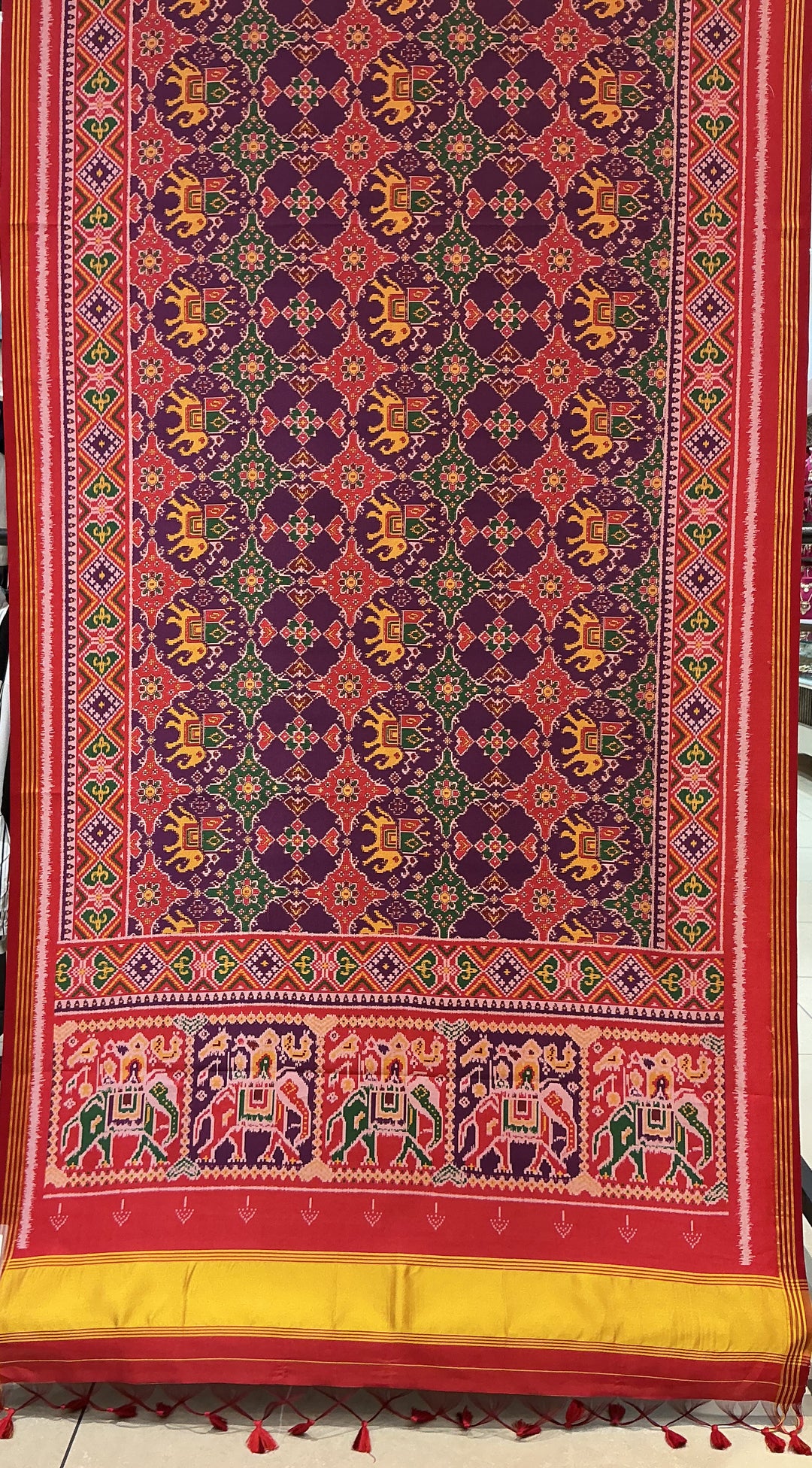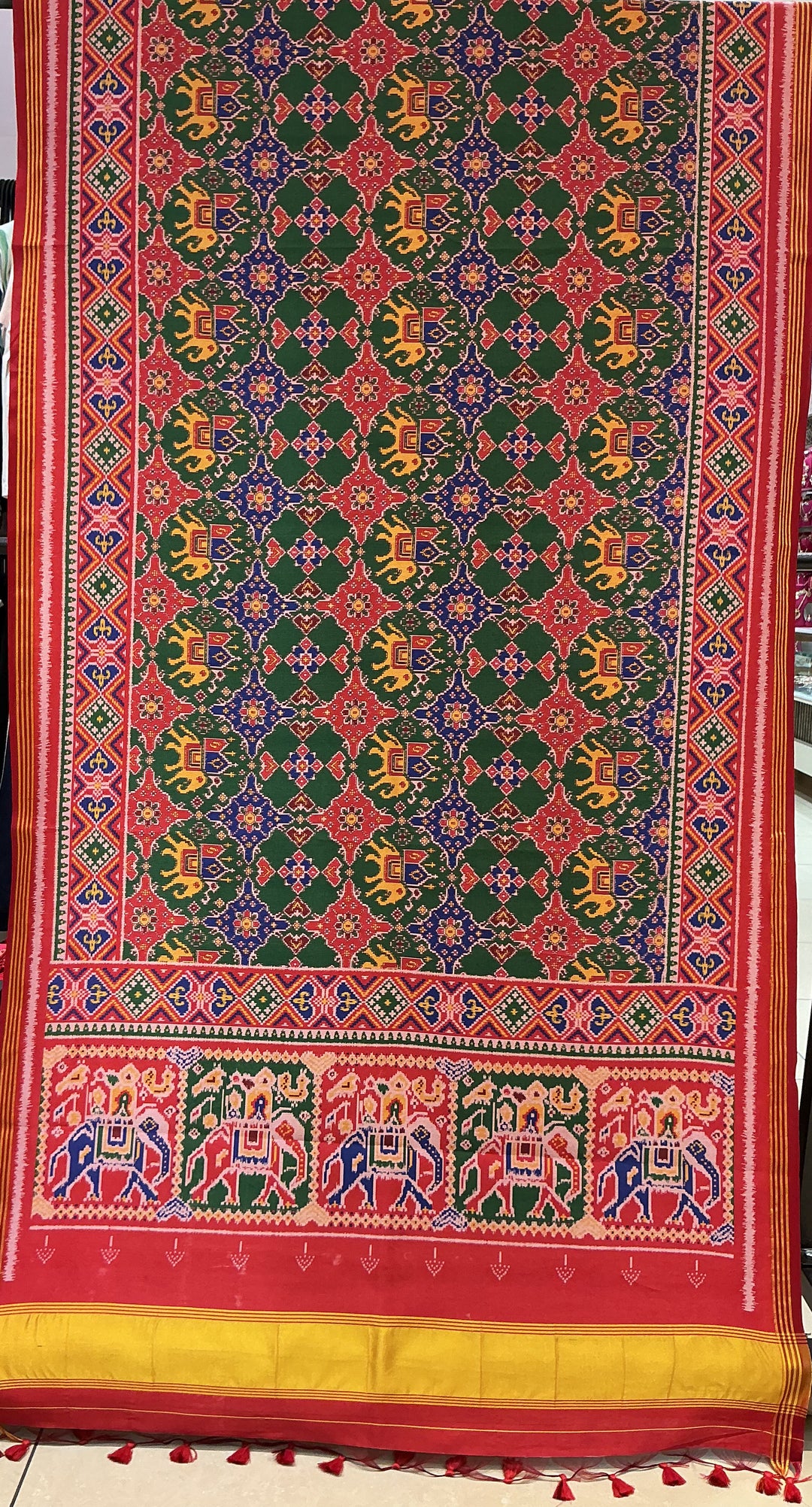 Royal Kunjar Bhat Inspired Patola Silk Saree with Elephant Border p374