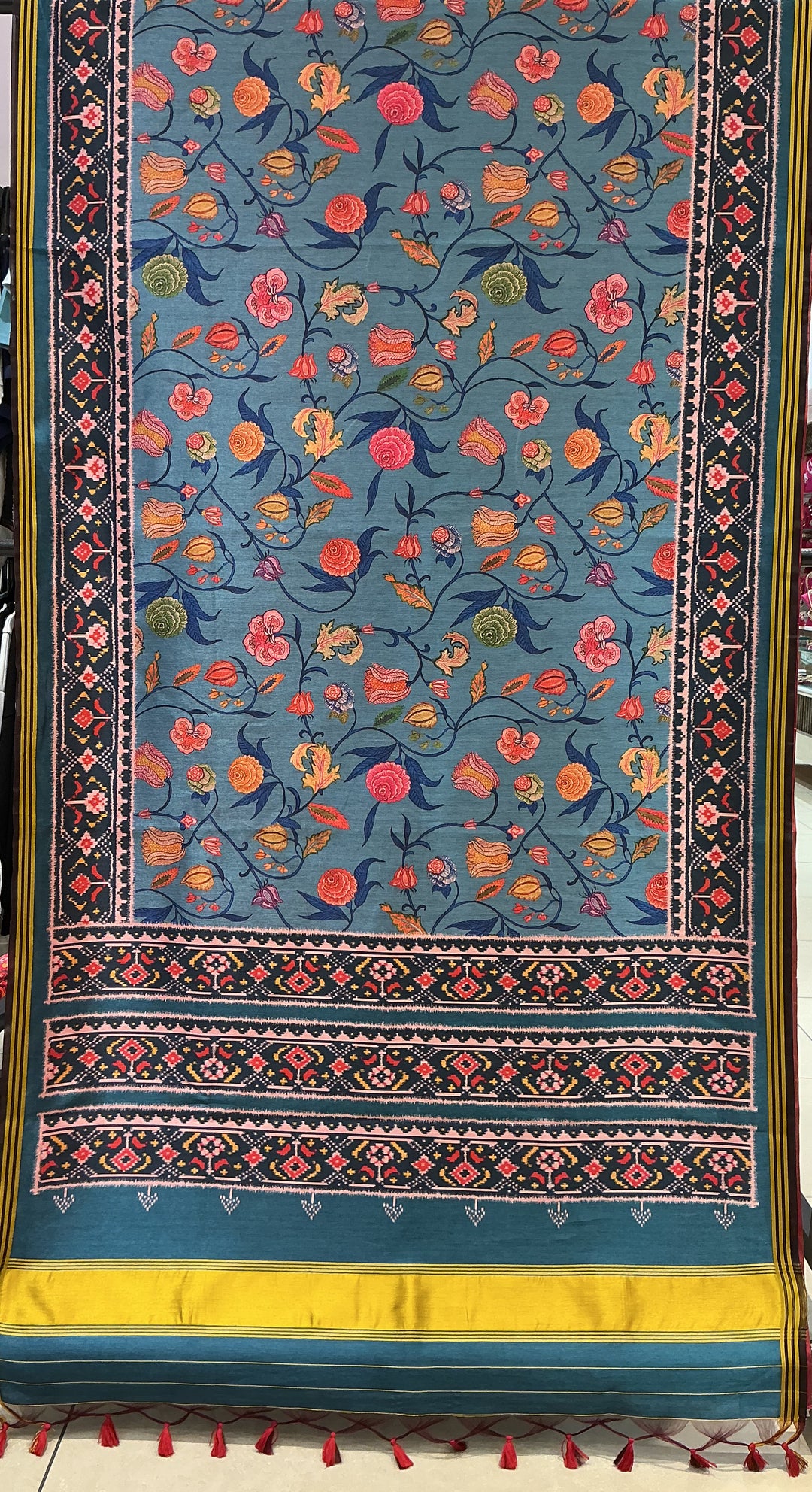 Elegant Blue Floral Inspired Patola Silk Saree with Traditional Border Weave p247
