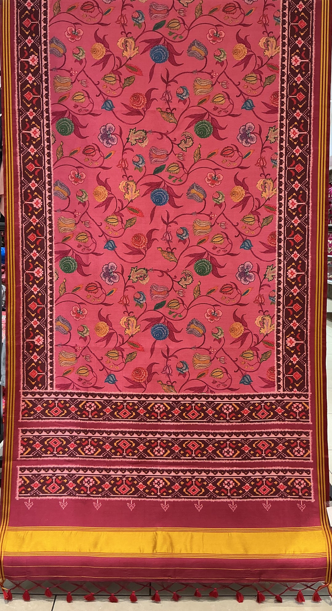 Elegant Pink Floral Patola Inspired Silk Saree with Traditional Woven Border p245