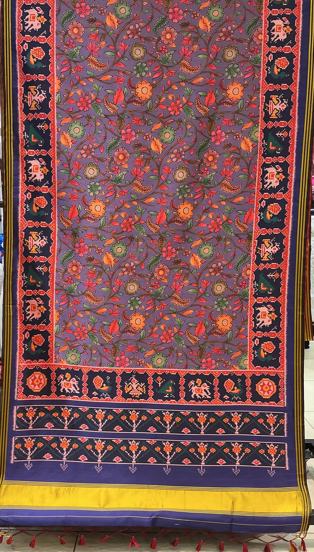 Royal Purple Floral Patola Inspired Silk Saree with Traditional Animal & Bird Border p152