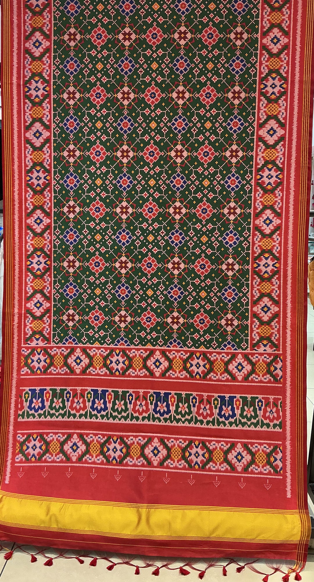 Traditional Green Patola Inspired Silk Saree with Heritage Border & Geometric Weave p364