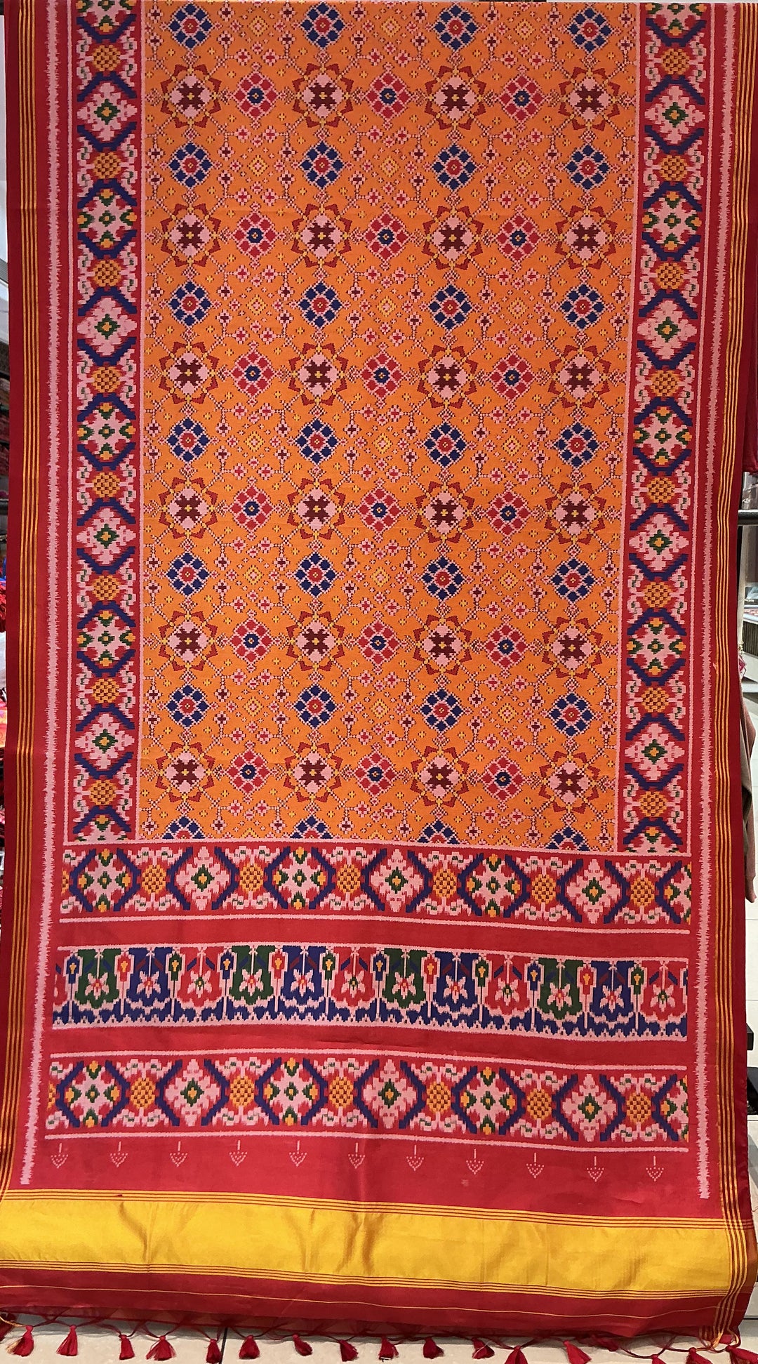 Festive Orange Patola Inspired Silk Saree with Heritage Border & Geometric Weave p361