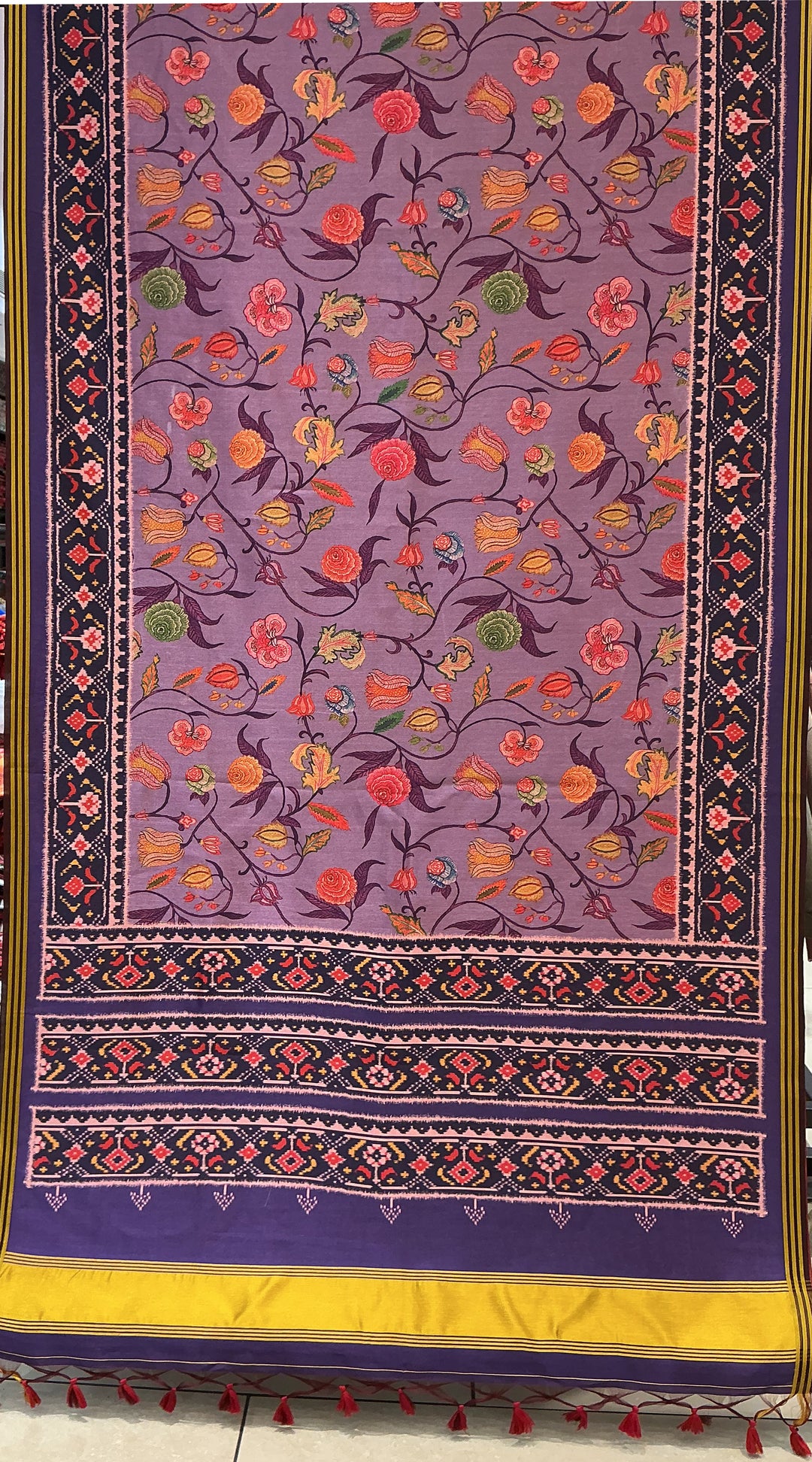Elegant Lavender Floral Patola Inspired Silk Saree with Traditional Woven Border p249
