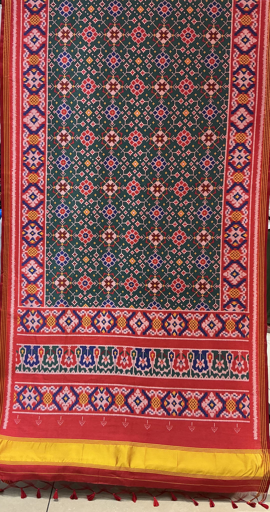 Green Nari Phool Bhat Patola Saree – Traditional Double Ikat Inspired Weaving