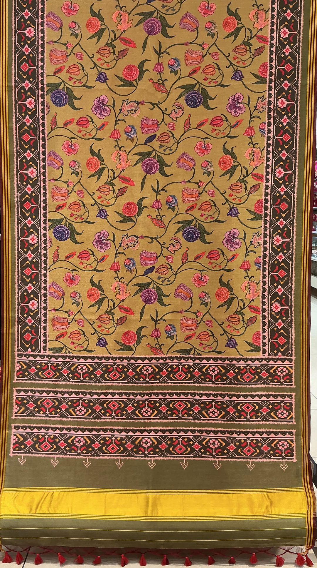 Olive Floral Patola Inspired Silk Saree with Traditional Woven Border p244