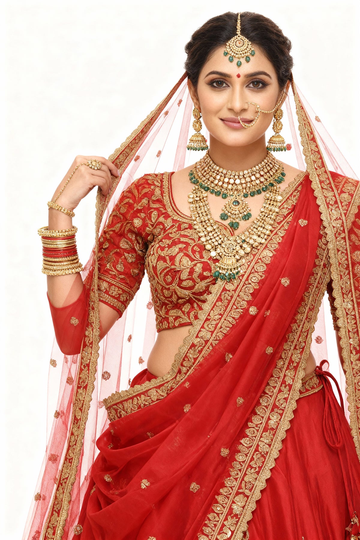 Step into your wedding day radiating timeless elegance with this Classic Red Handcrafted Bridal Silk Lehenga, a masterpiece that captures the soul of Indian bridal heritage.
