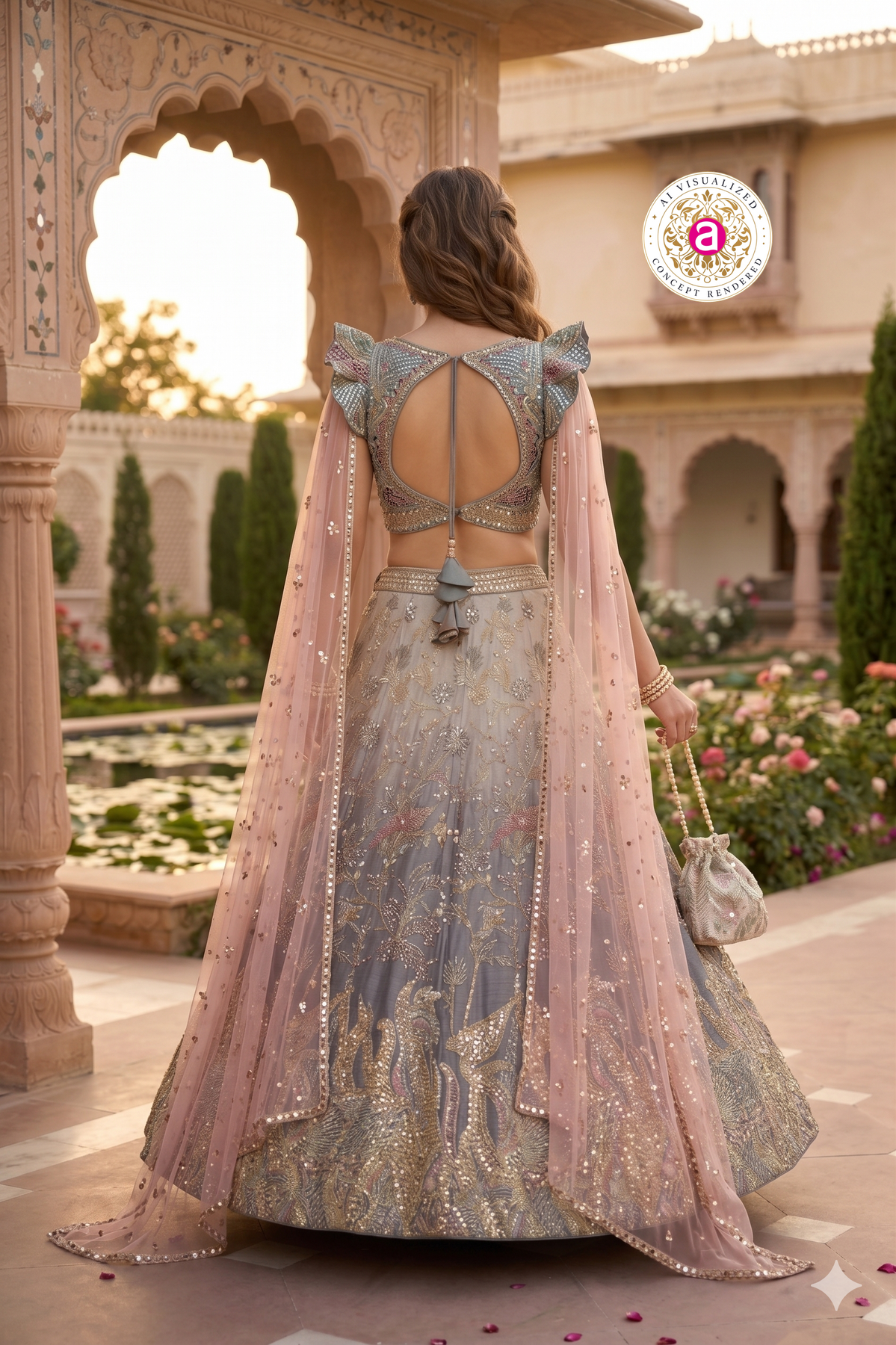 Dusty Grey Designer Lehenga Set with Blush Pink Dupatta