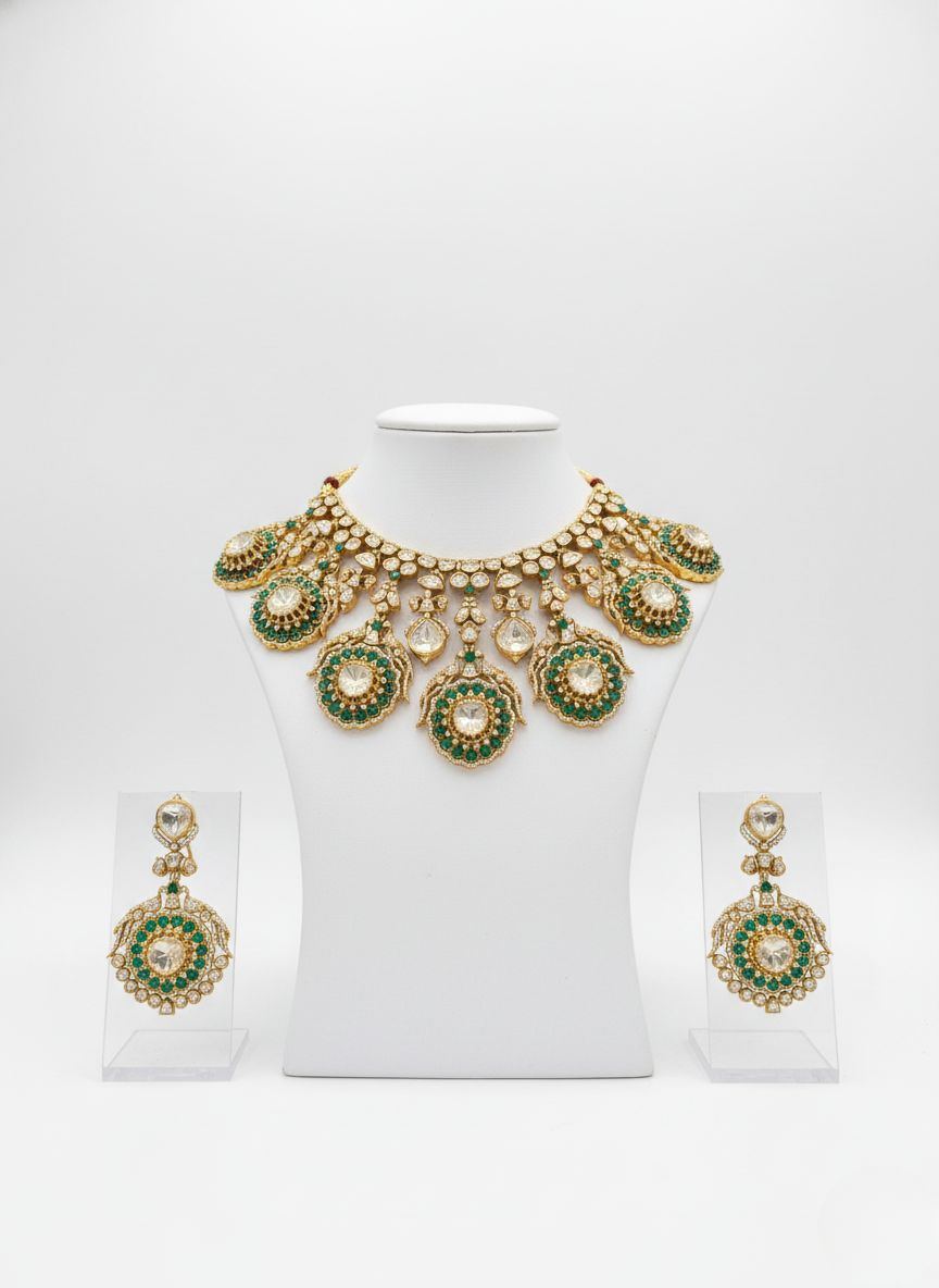 Material:Premium Alloy Base, High-Quality Kundan Stones, Emerald Green Stones, Pearls & Cut-Stone Embellishments