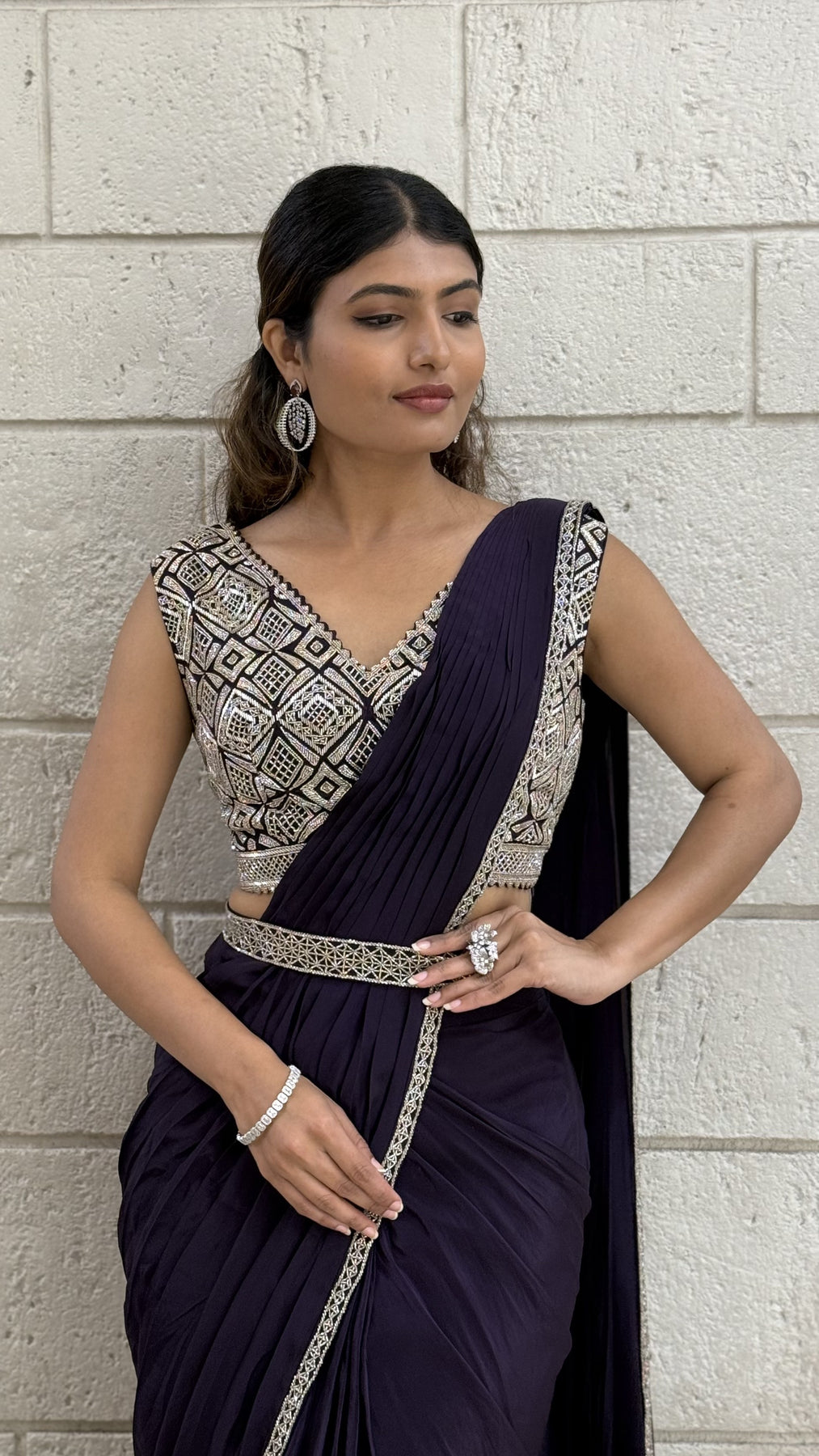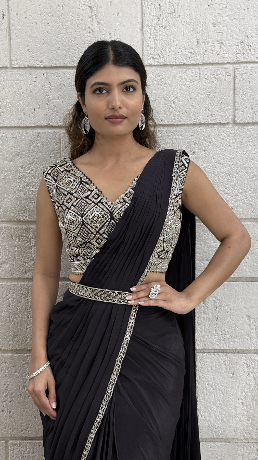 Experience effortless elegance with this ready-to-wear saree, designed for a flawless drape and modern sophistication. Crafted for convenience without compromising on style, this saree comes pre-stitched for easy wear, offering a perfectly structured silhouette in minutes.