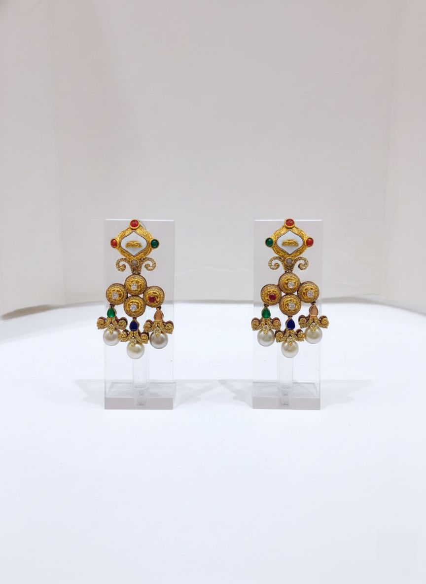 • Design: Traditional Polki-Kundan Craft with Multicolor Gemstones
