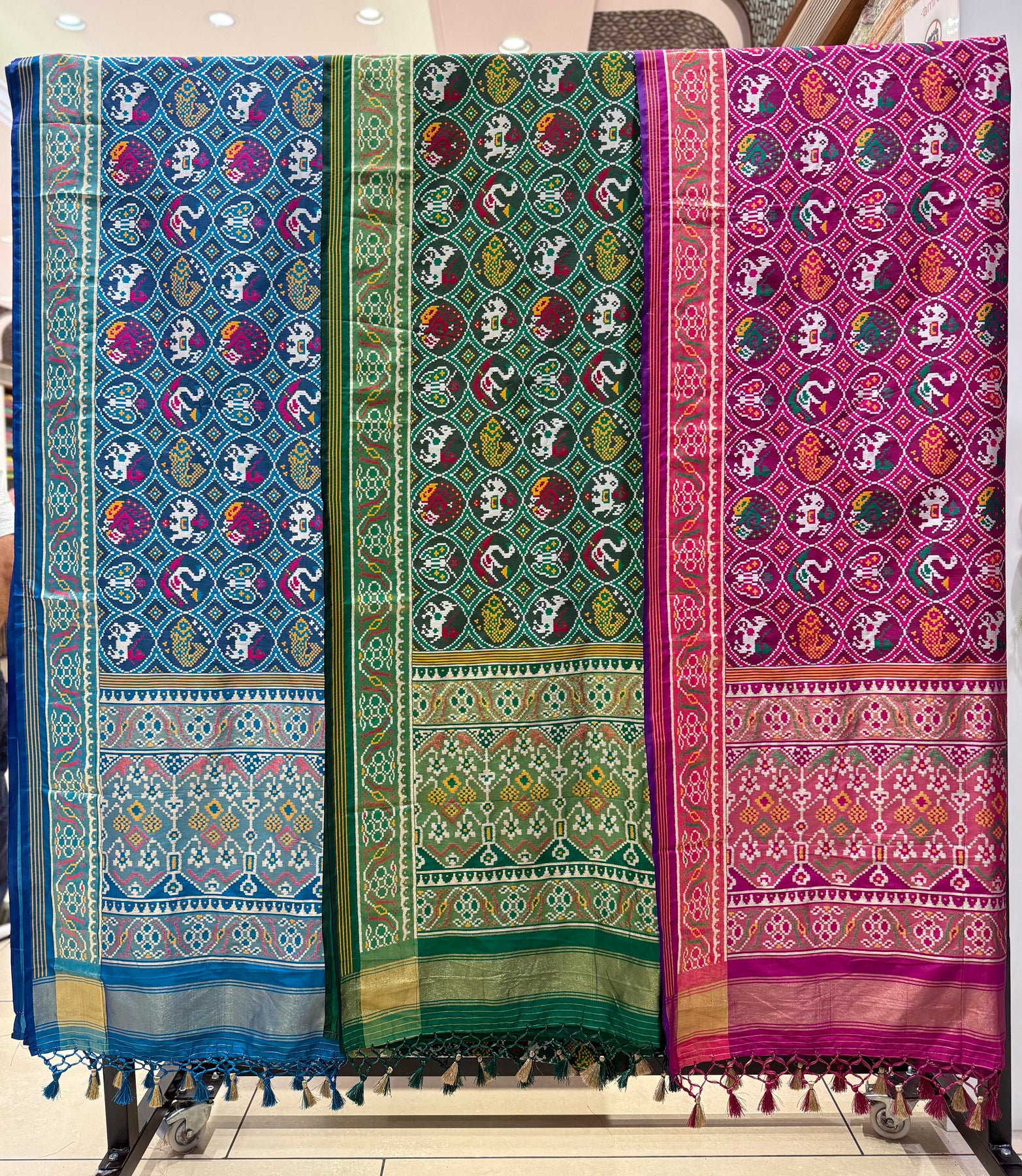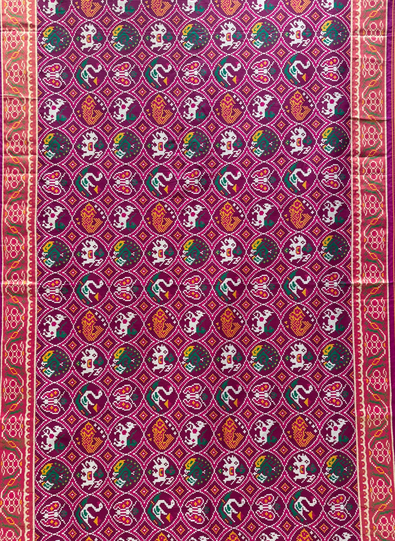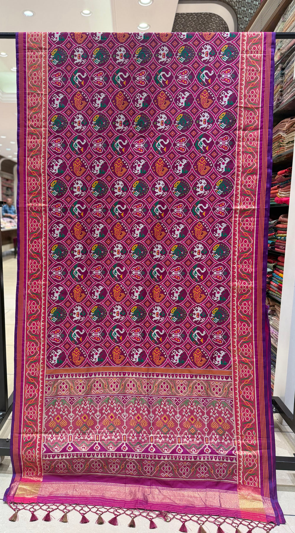 Royal Kunjar Bhat Patola Saree – Chowkdi Layout Inspired Double Ikat Weaving
