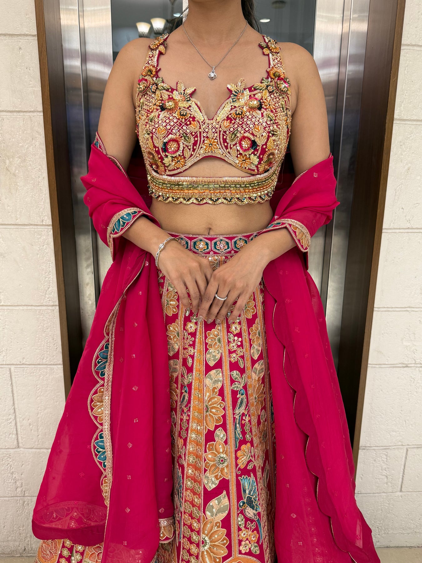 Color: Multicolor embroidery with pink dupatta