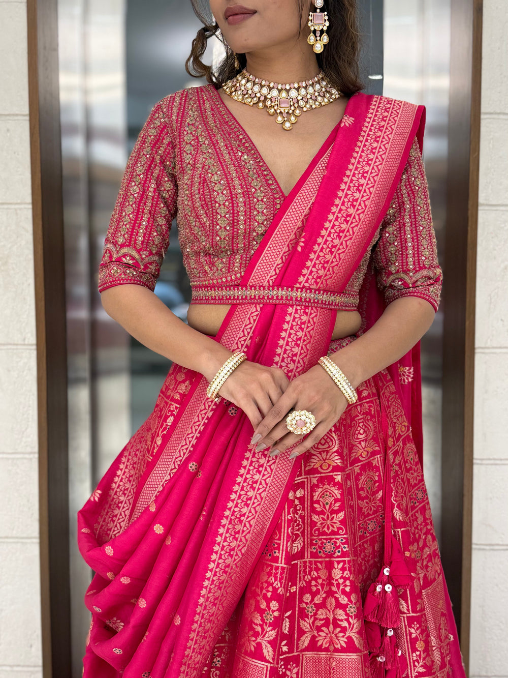 Rani Pink Heavy Banarasi Silk Lehenga Set with Intricate Zari Weaving & Designer Blouse