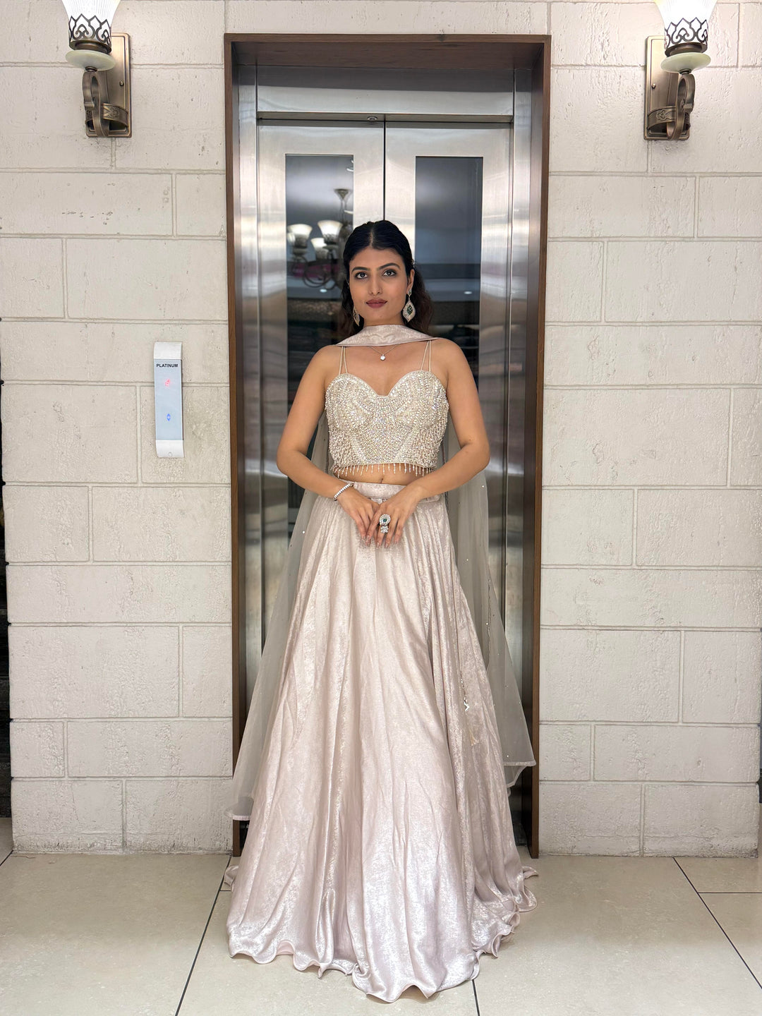 Champagne Silver Sequin Mermaid Lehenga Set with Halter Blouse