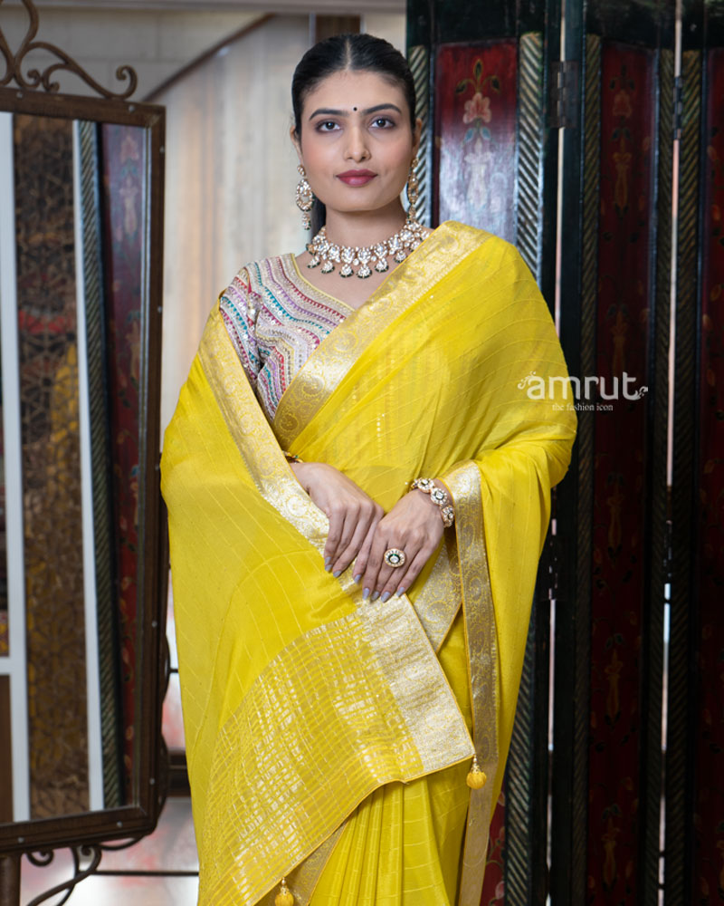 Yellow Zari Embellished Border Saree with Stitched Blouse