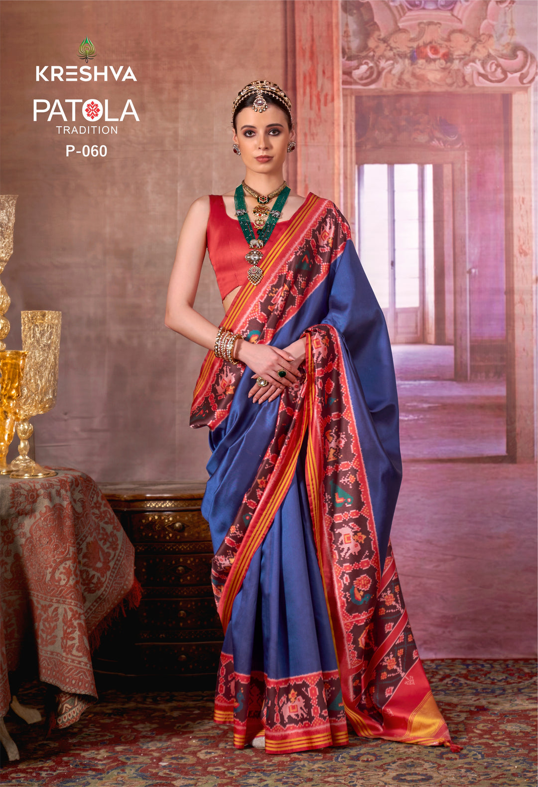 Royal Blue & Red Patola Soft Silk Saree with Traditional Ikat Border & Pallu