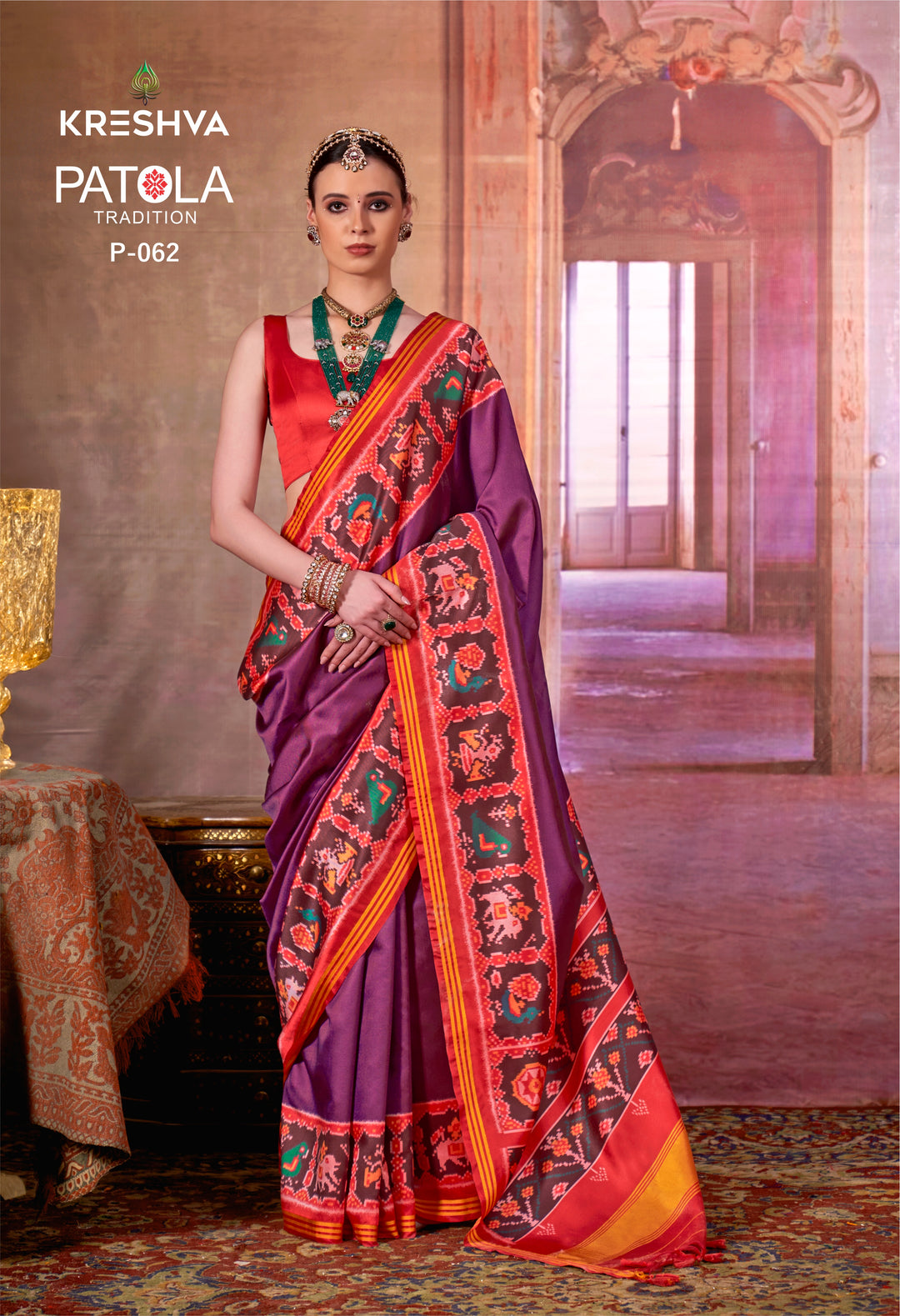 Purple & Red Patola Soft Silk Saree with Traditional Ikat Border and Rich Pallu