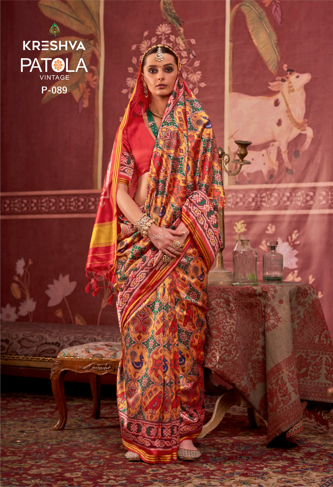 Vintage Red & Yellow Patola Soft Silk Saree with Multicolour Ikat Weaving & Royal Traditional Pallu