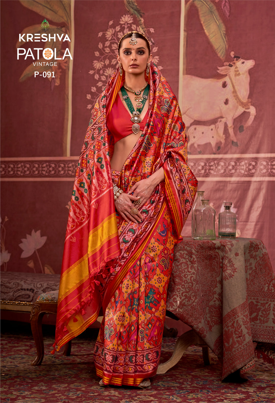 Elegant Patola Silk Saree with Unstitched Blouse and Exquisite Weaving
