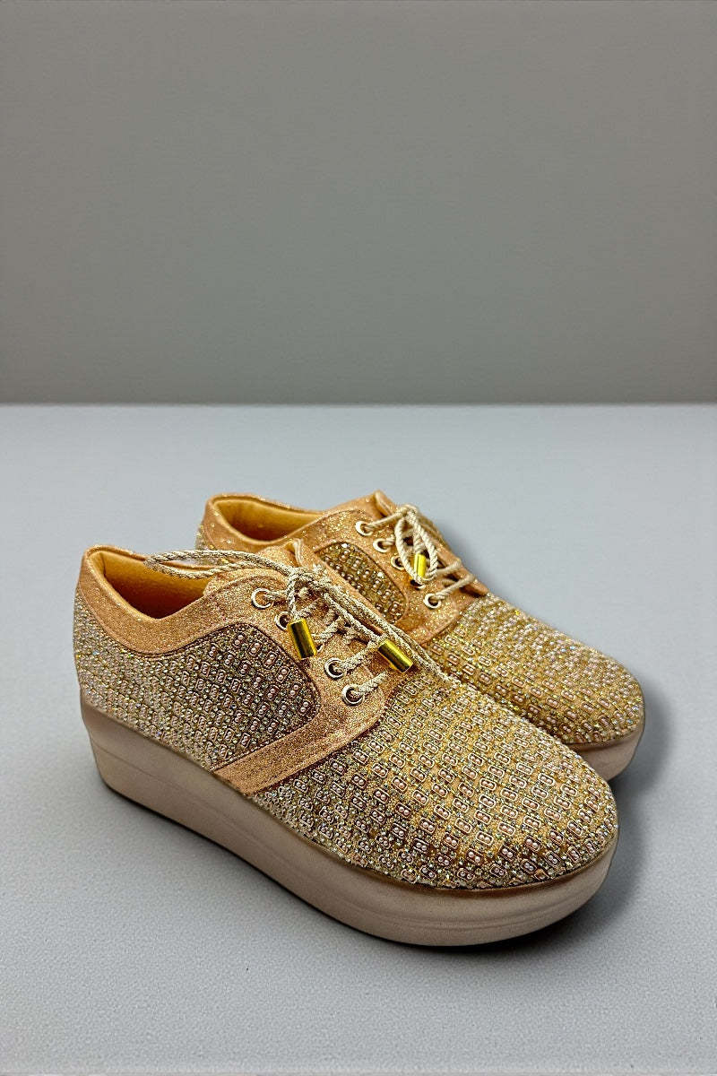 Gold Embellished Platform Sneakers – Designer Ethnic Fusion Footwear